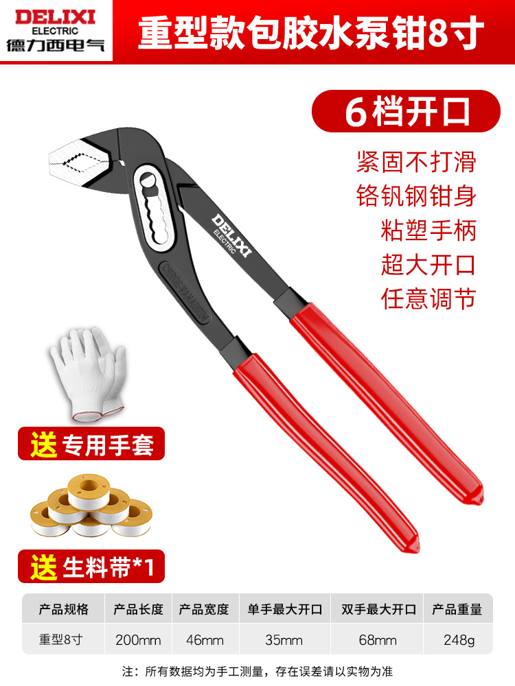 Delixi 전기 다기능 워터 펌프 펜치 유니버설 대형 개방형 워터 파이프 펜치 렌치 대형 펜치 워터 파이프 펜치스토어 가기
