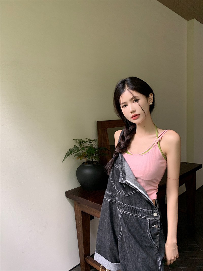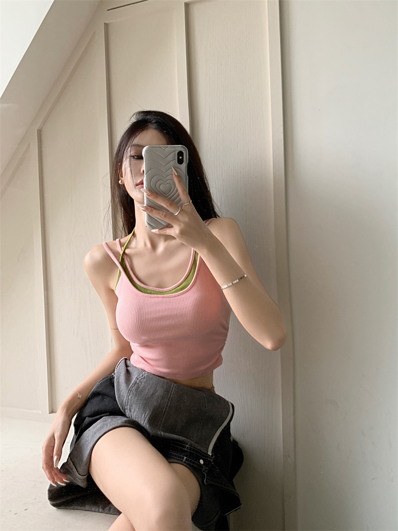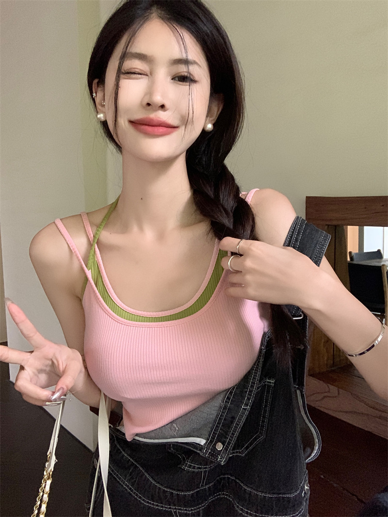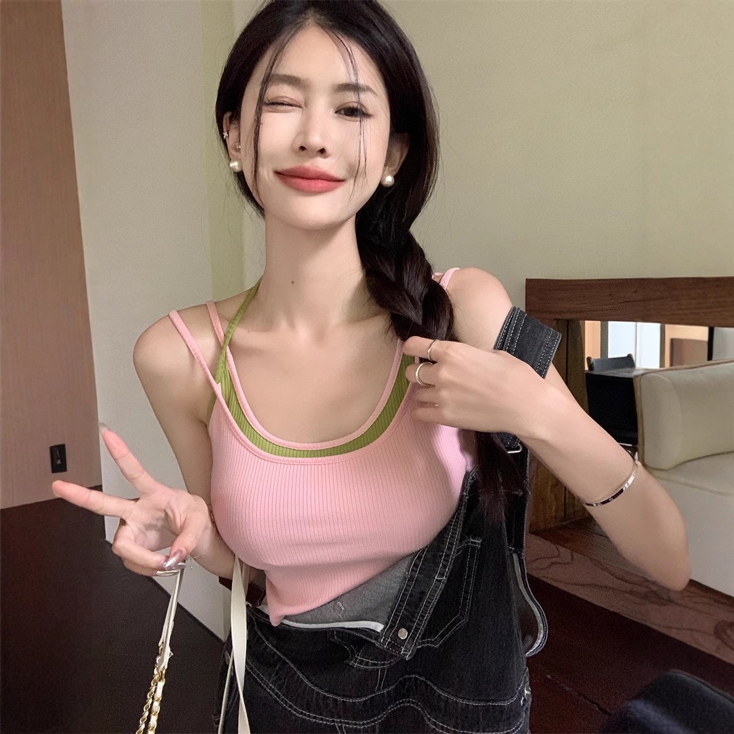 태국 핑크 가짜 투피스 홀터 카미 솔 여성 여름 새 아우터 도파민 달콤한 스파이스 걸 재즈 탑