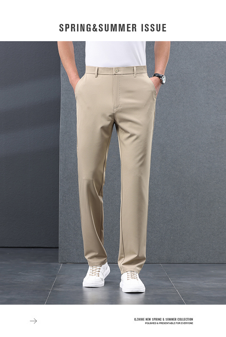 무료 배송 비 다림질 스트레치 바지 남성용 슬림 핏 한국식 비즈니스 캐주얼 바지 봄과 여름 얇은 스트레치 남성용 바지스토어 가기