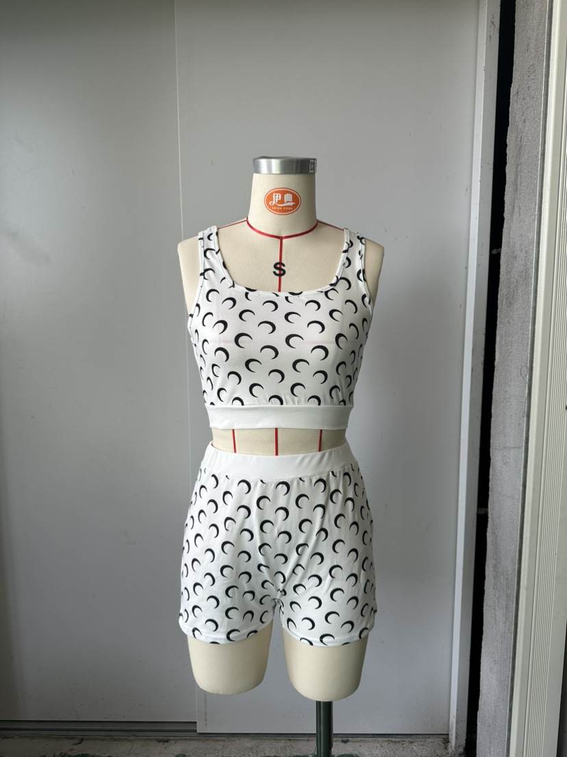 유럽과 미국 국경 2025 아마존 새로운 섹시한 슬림 조끼 반바지 세트 패션 초승달 프린트 투피스 세트