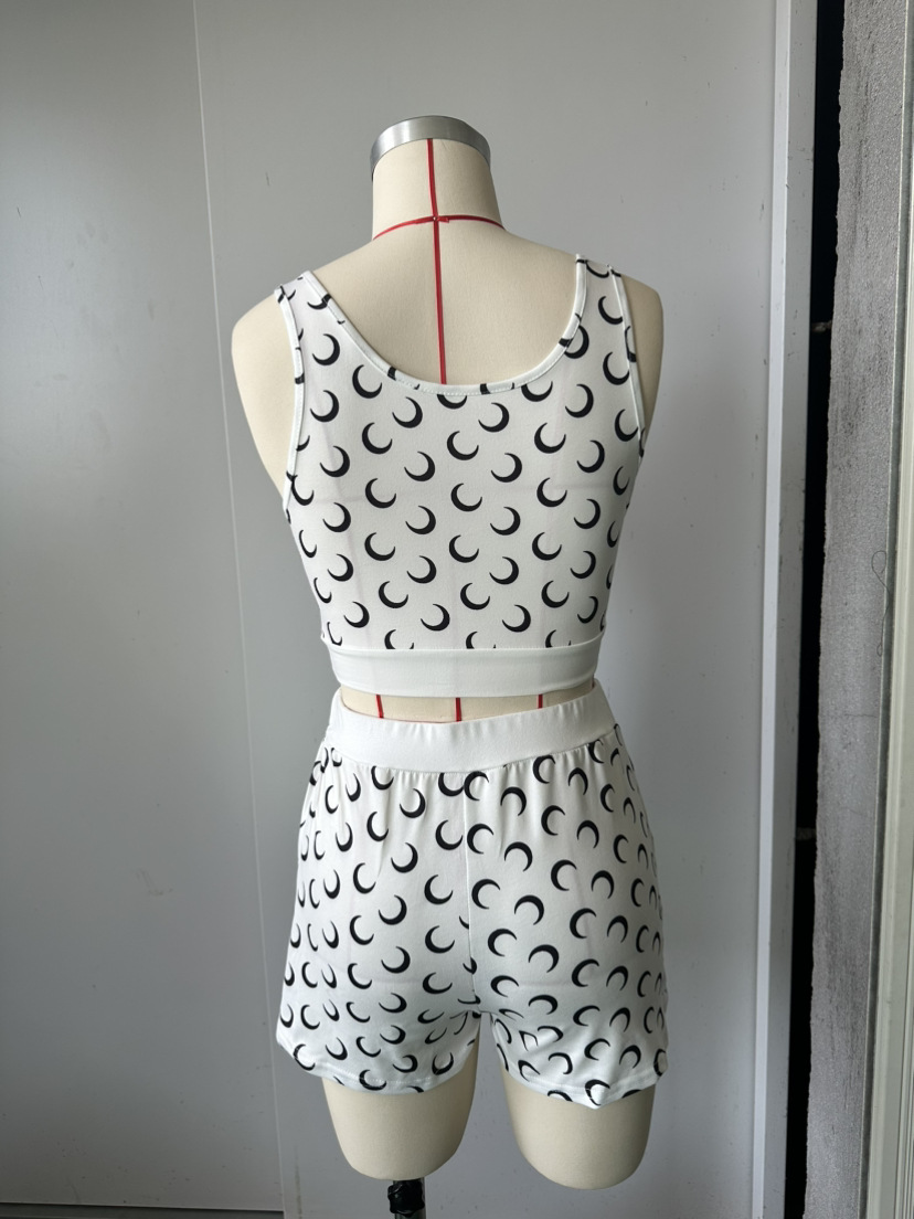 유럽과 미국 국경 2025 아마존 새로운 섹시한 슬림 조끼 반바지 세트 패션 초승달 프린트 투피스 세트스토어 가기