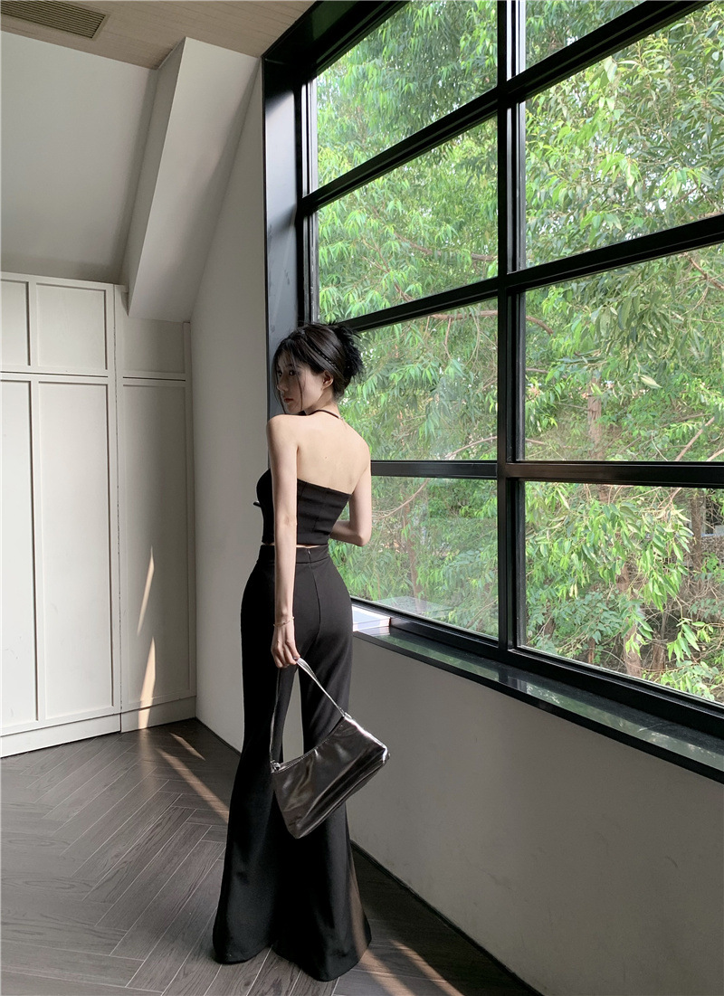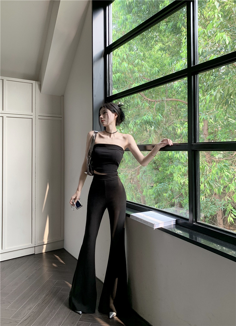 순수한 욕망 스타일 튜브 탑 슬링 작은 조끼 여름 세트 여성의 높은 허리 캐주얼 경적 바지 뜨거운 소녀 투피스 세트스토어 가기