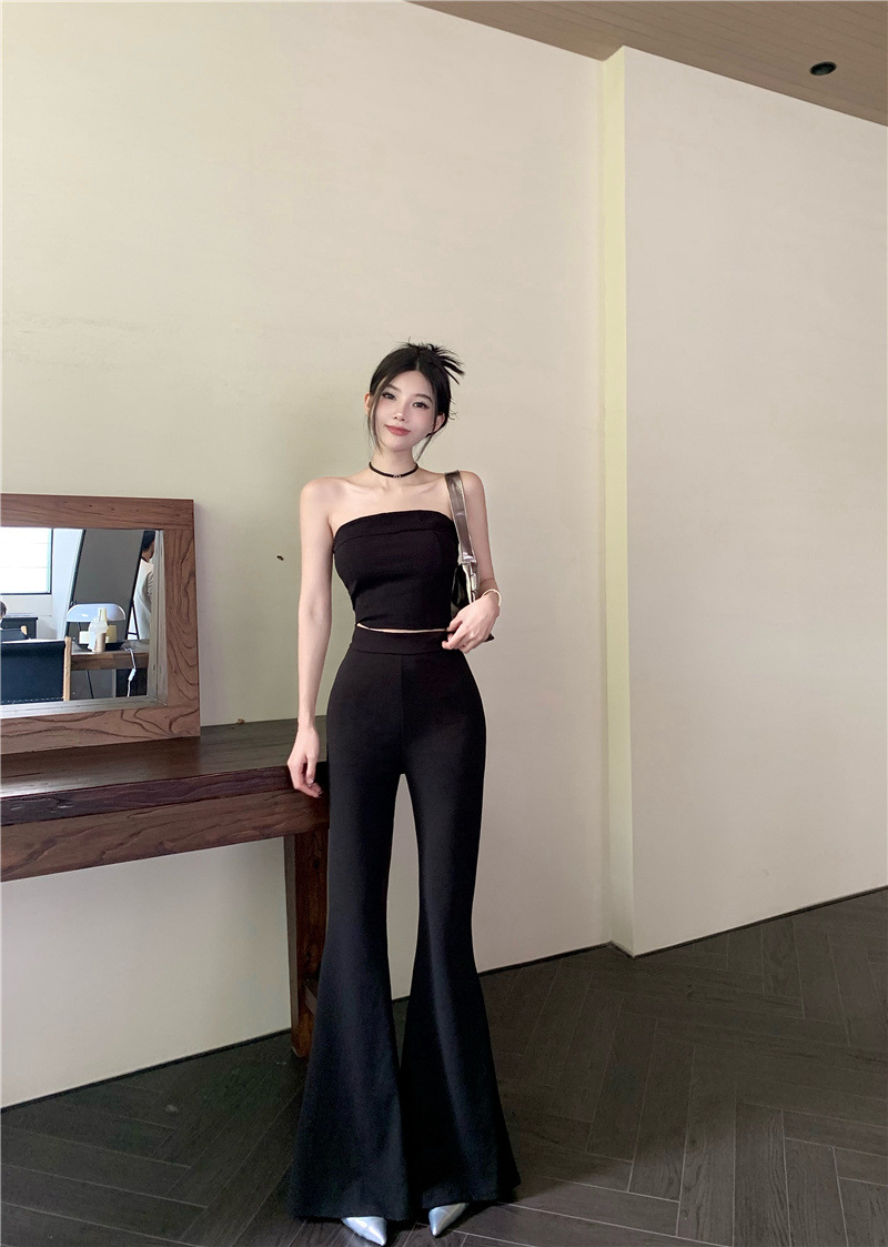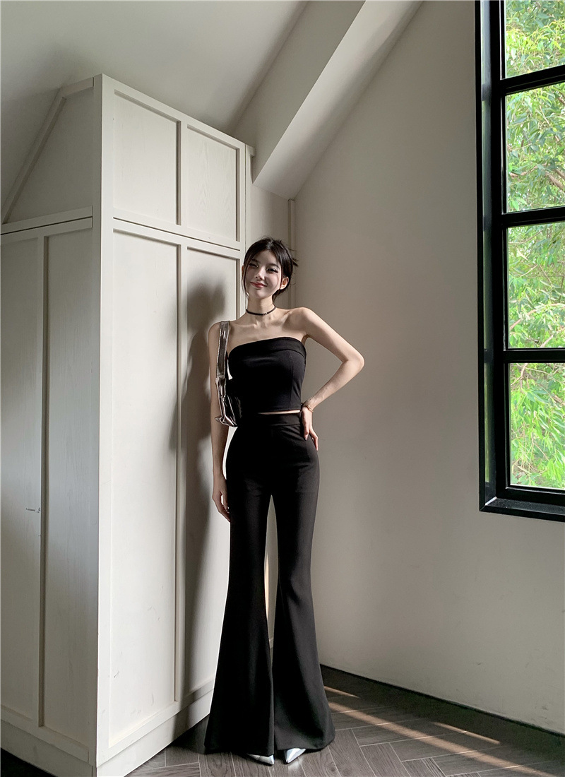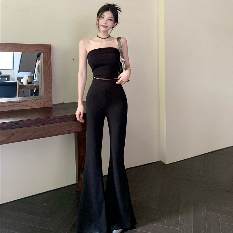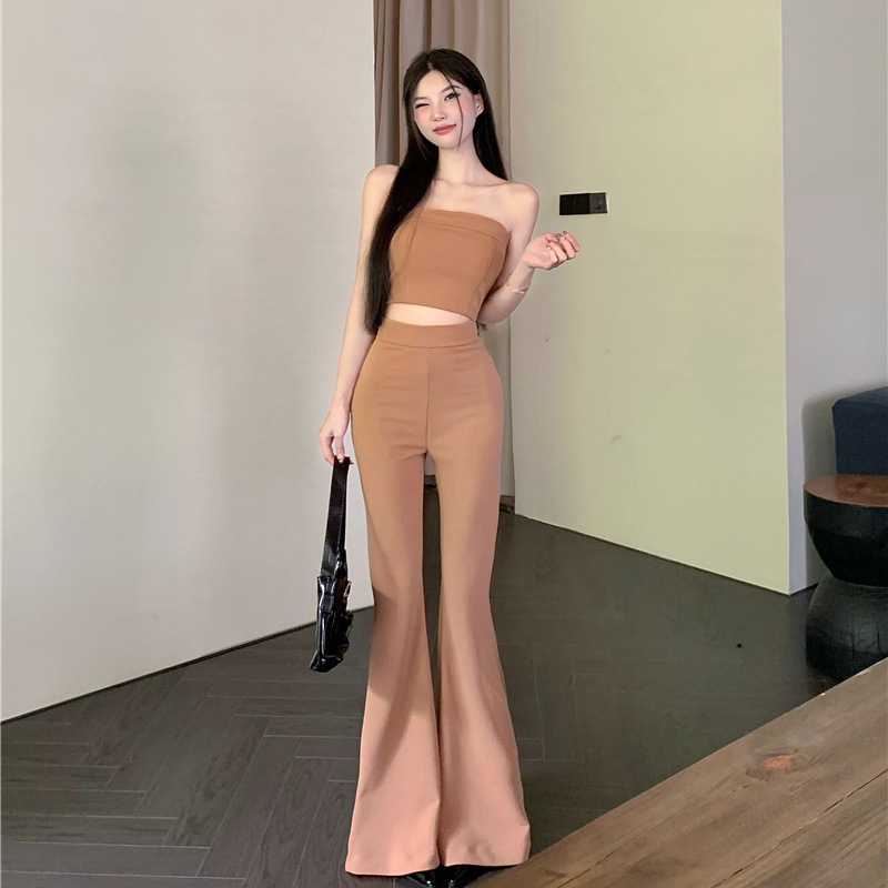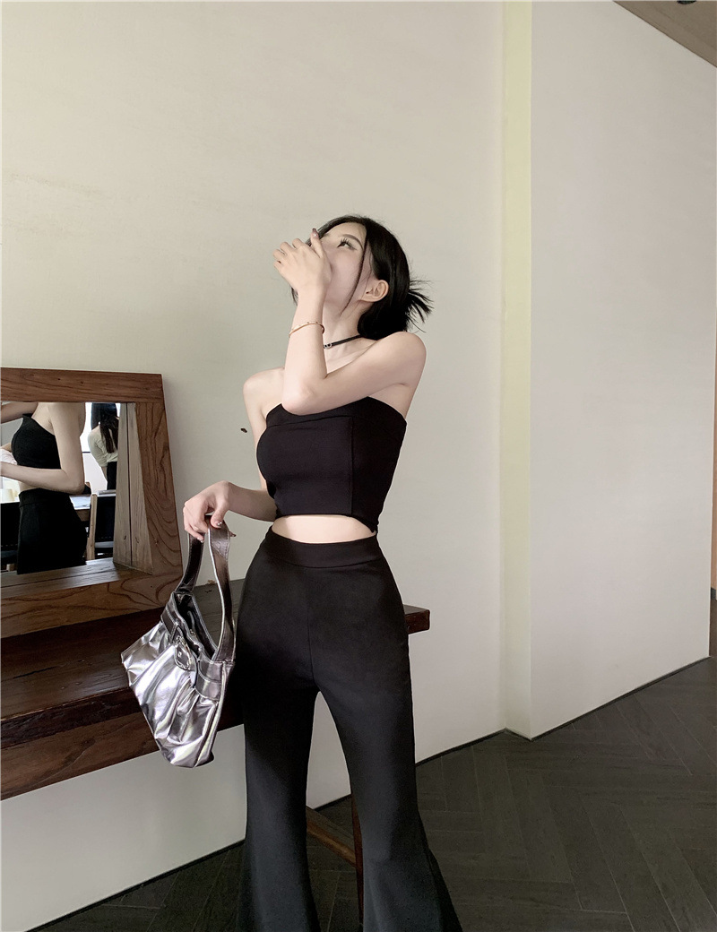 순수한 욕망 스타일 튜브 탑 슬링 작은 조끼 여름 세트 여성의 높은 허리 캐주얼 경적 바지 뜨거운 소녀 투피스 세트