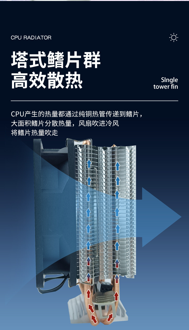 공장 직판 2구리관 CPU 쿨러 저소음 12cm 팬 1700amd 케이스 듀얼 구리관 CPU 쿨러