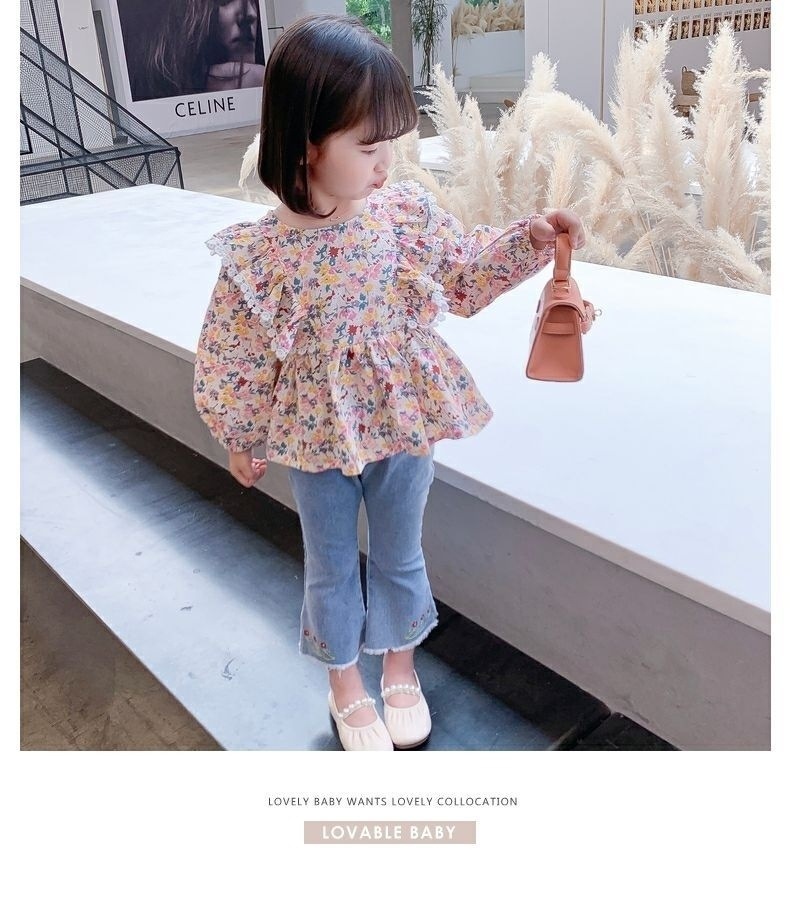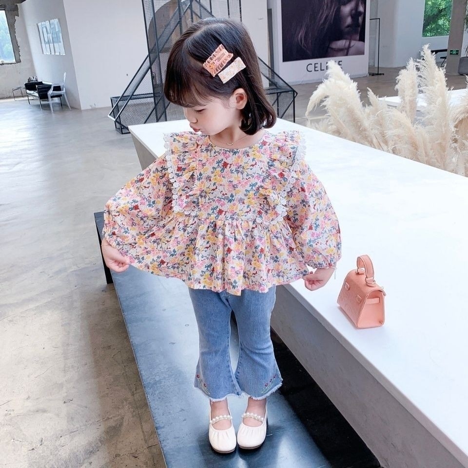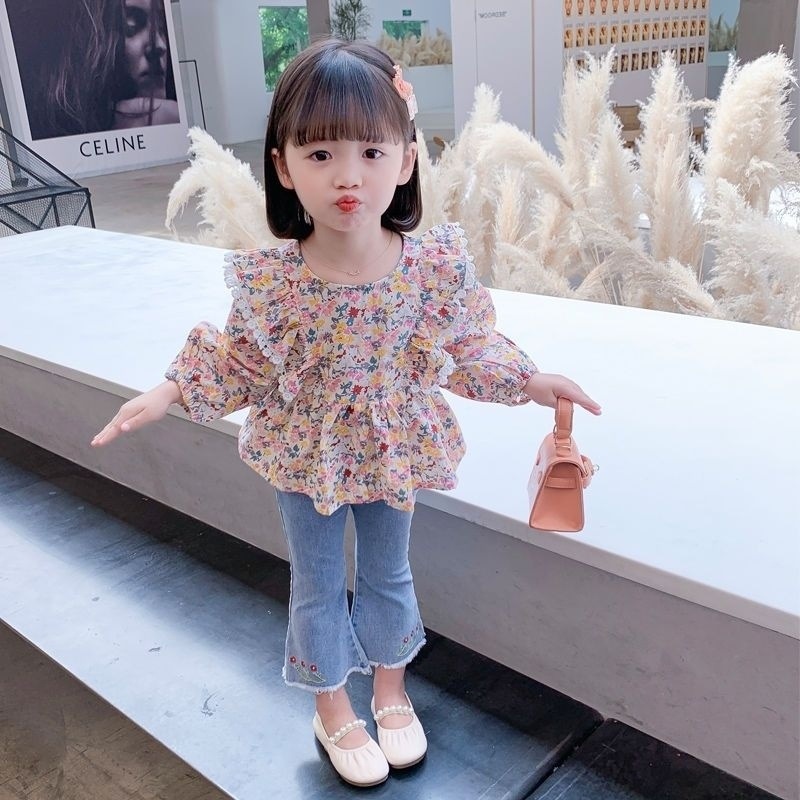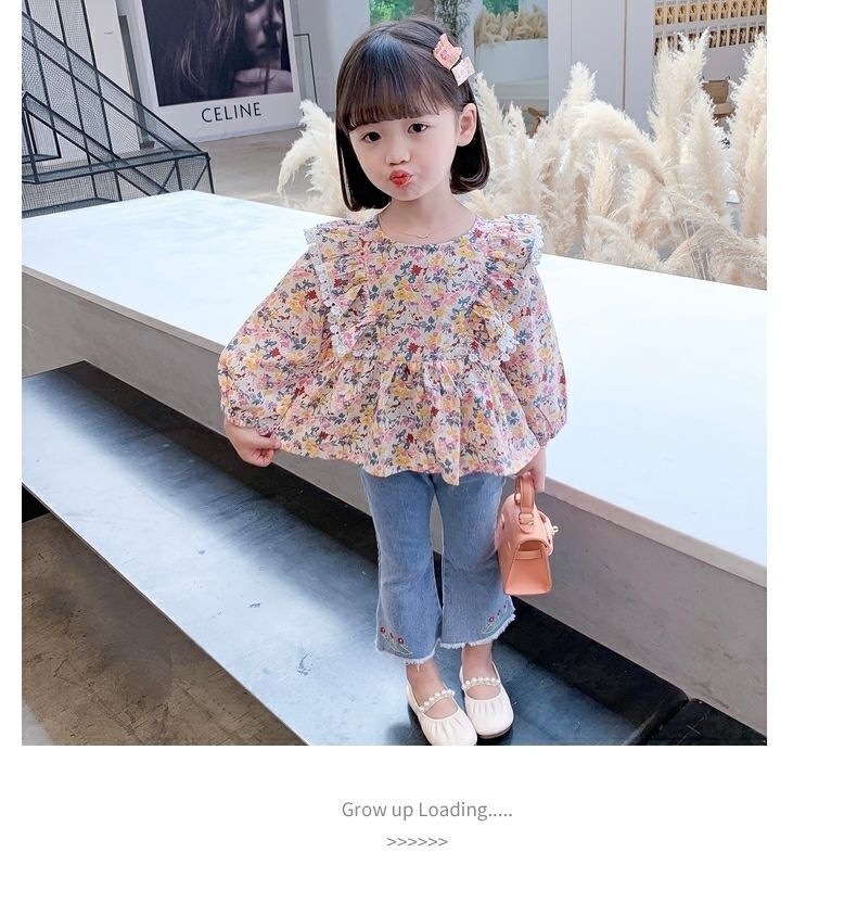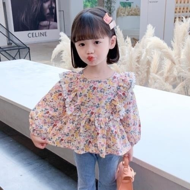[2025 새] 여자 봄 셔츠 2025 새 소녀 그물 붉은 꽃 탑 어린이 유행 암소스토어 가기