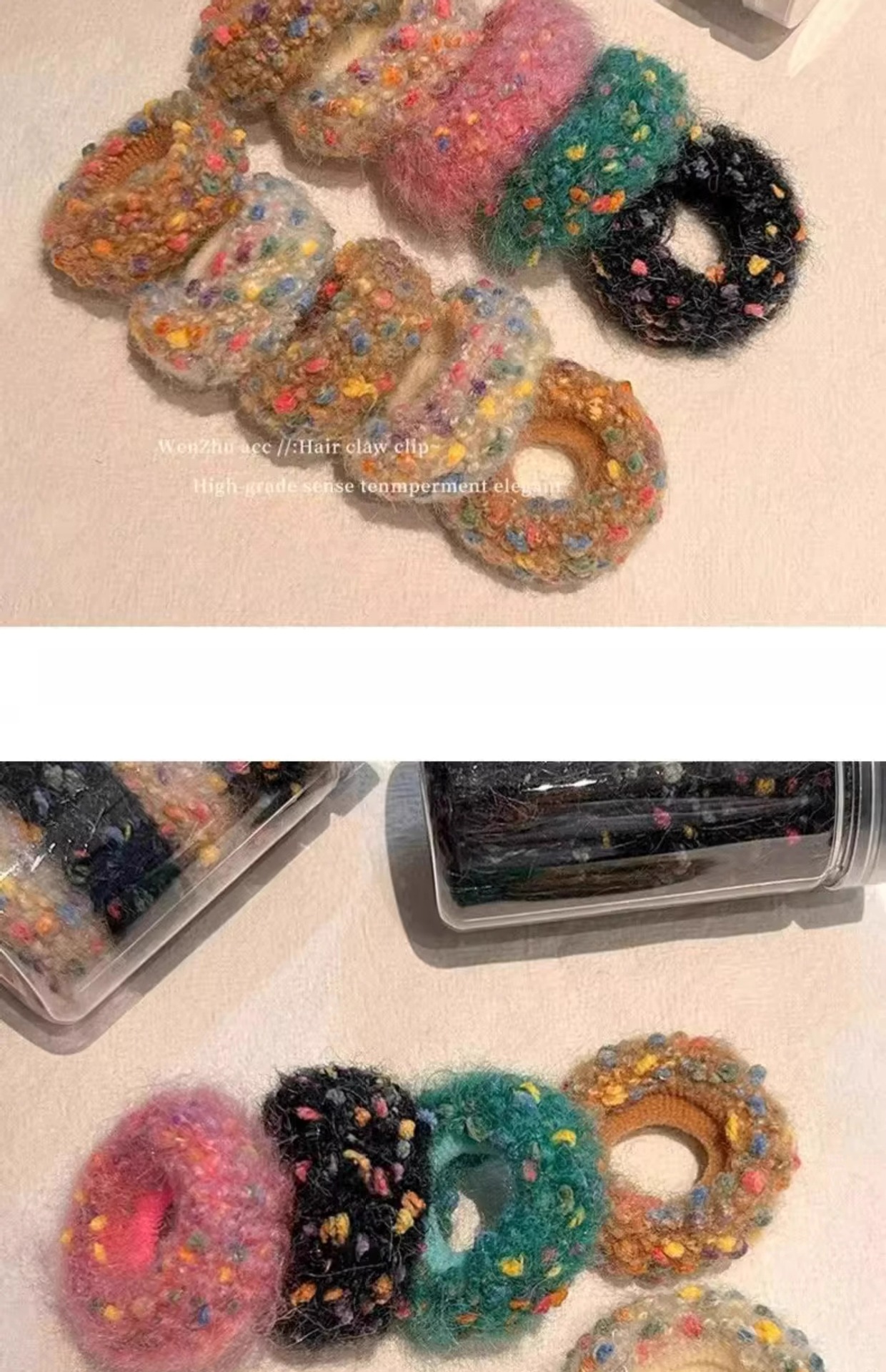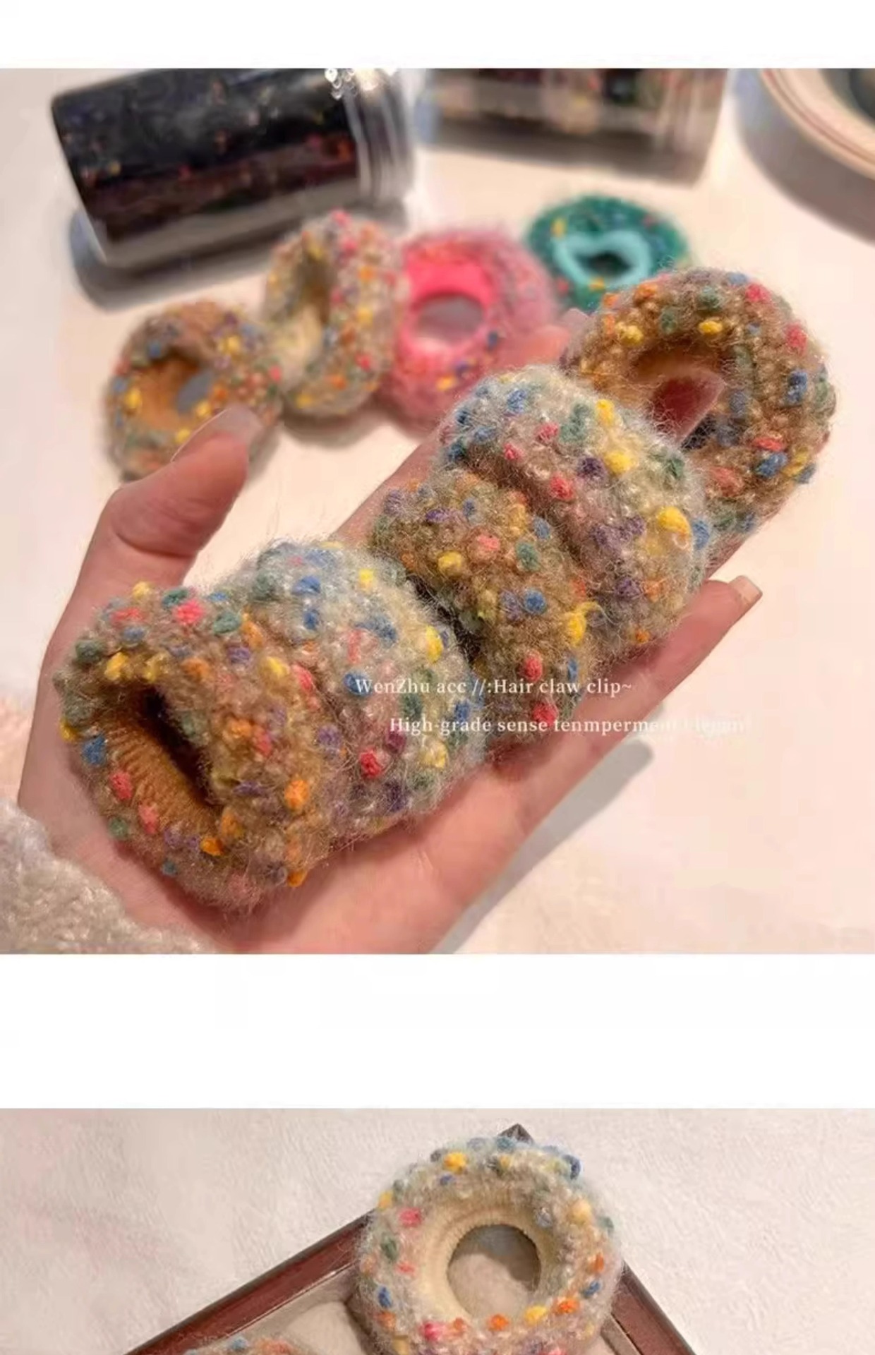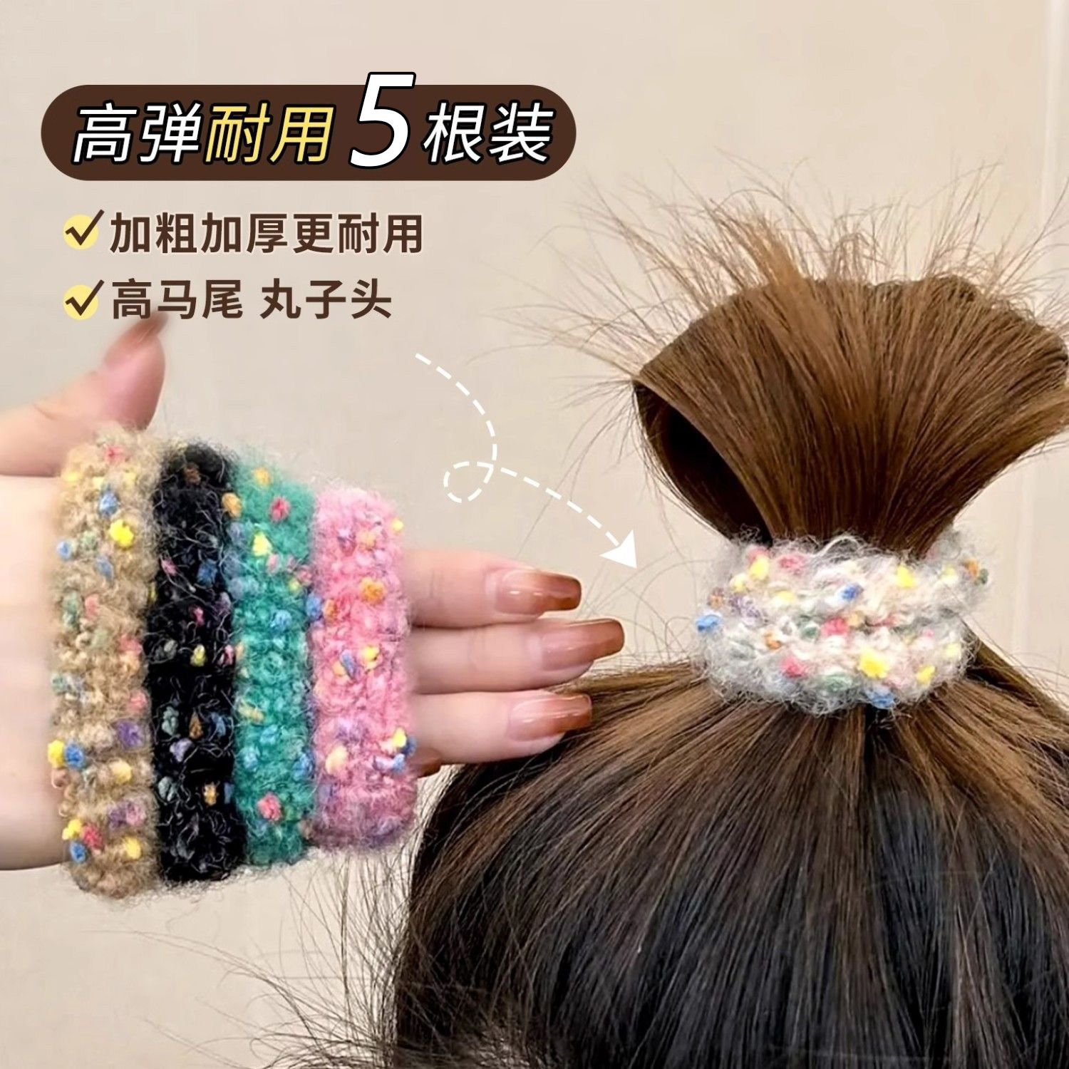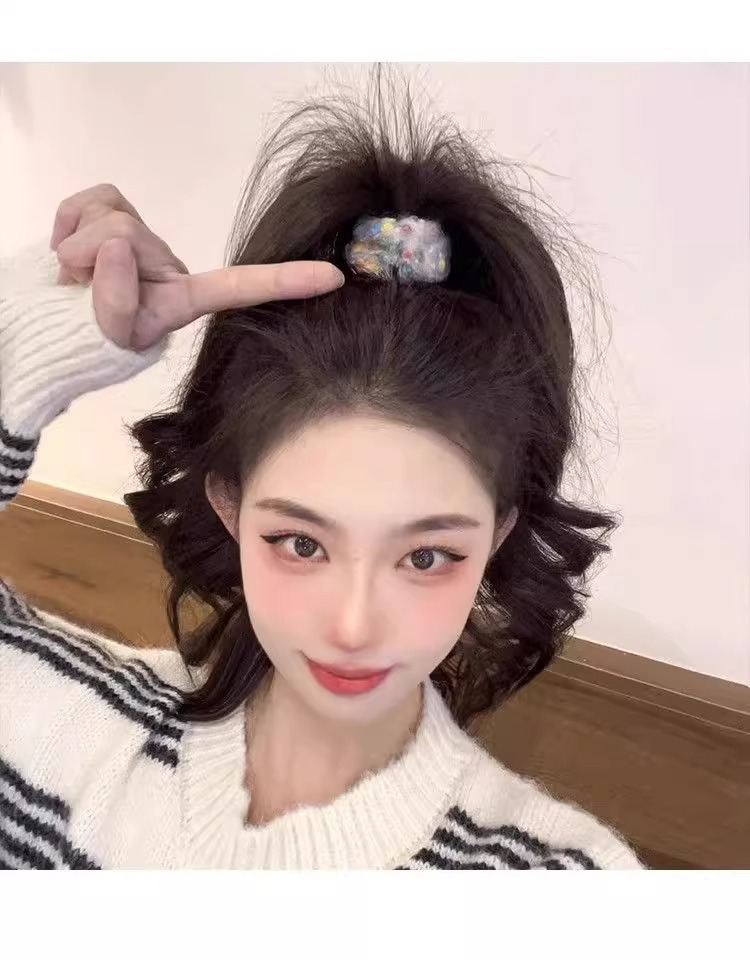 새로운 컬러 도트 헤어 링 작은 향기로운 스타일 양모 니트 목가적 인 스타일 컬러 달콤한 높은 탄성 수건 링 쉐이크 톤 폭발스토어 가기