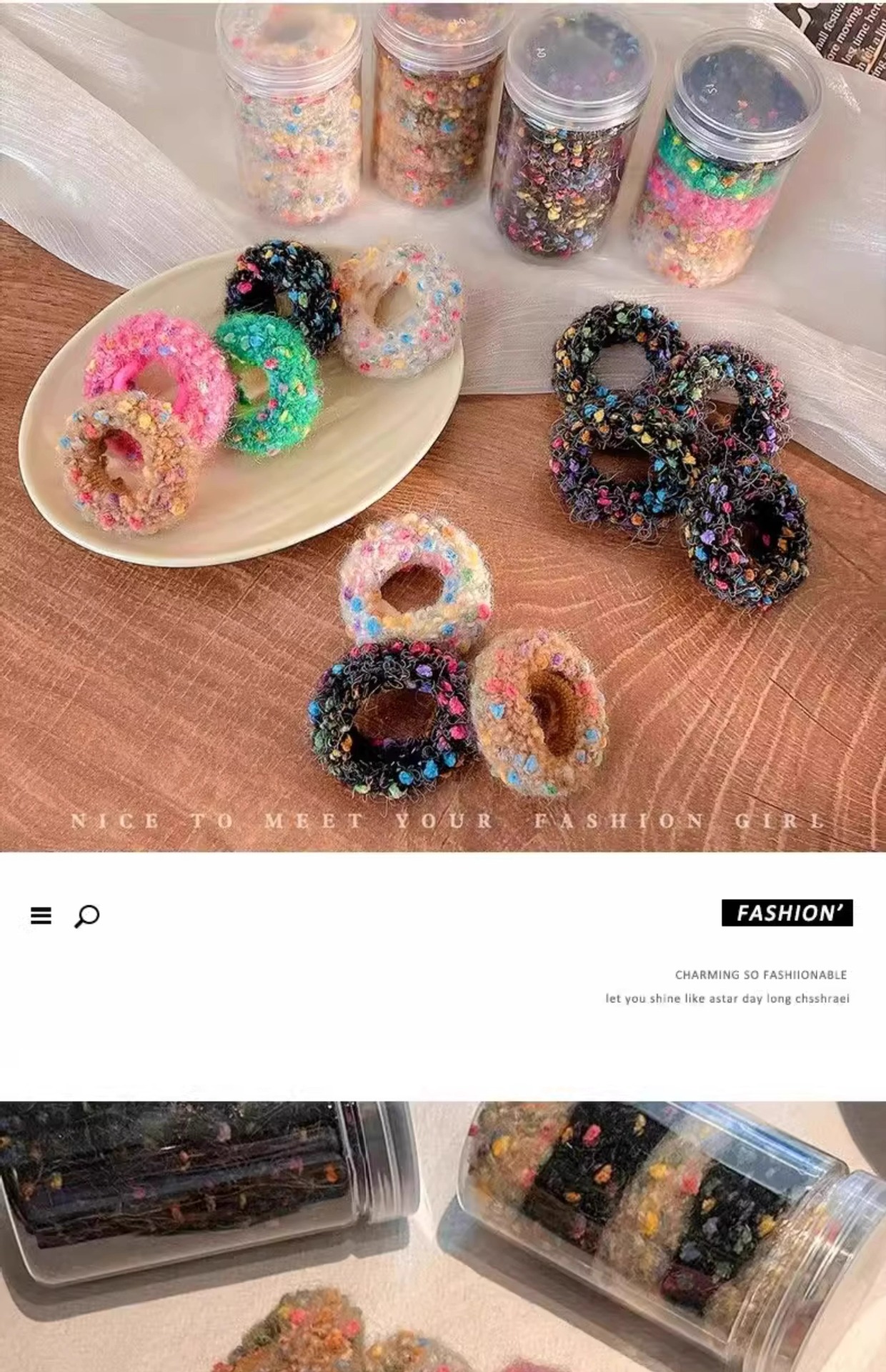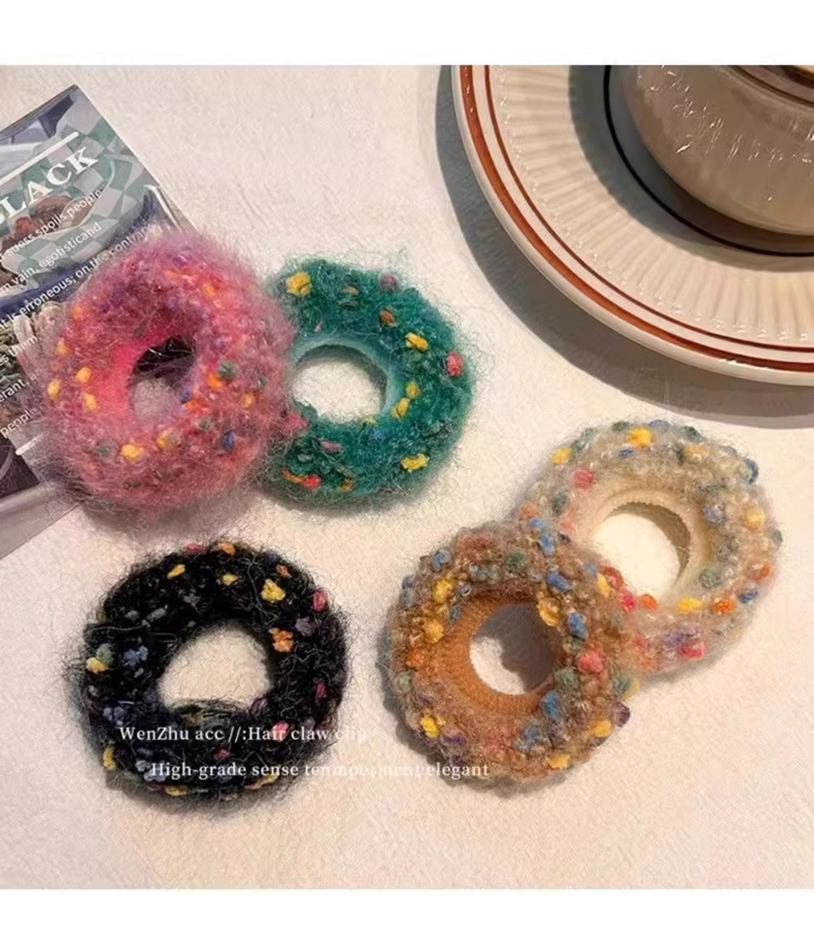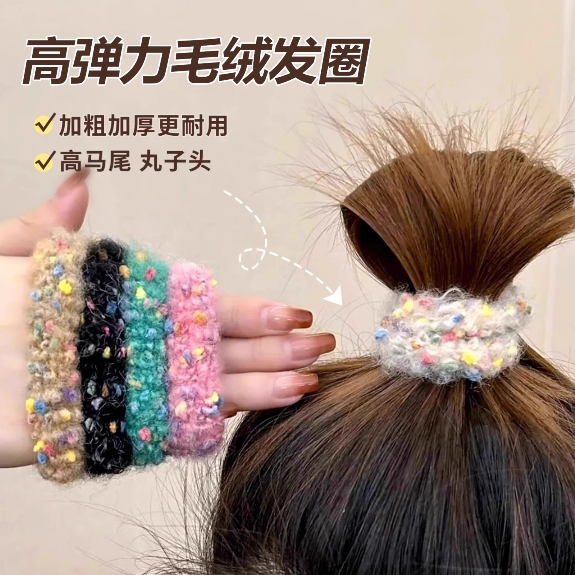 새로운 컬러 도트 헤어 링 작은 향기로운 스타일 양모 니트 목가적 인 스타일 컬러 달콤한 높은 탄성 수건 링 쉐이크 톤 폭발스토어 가기