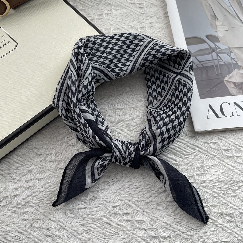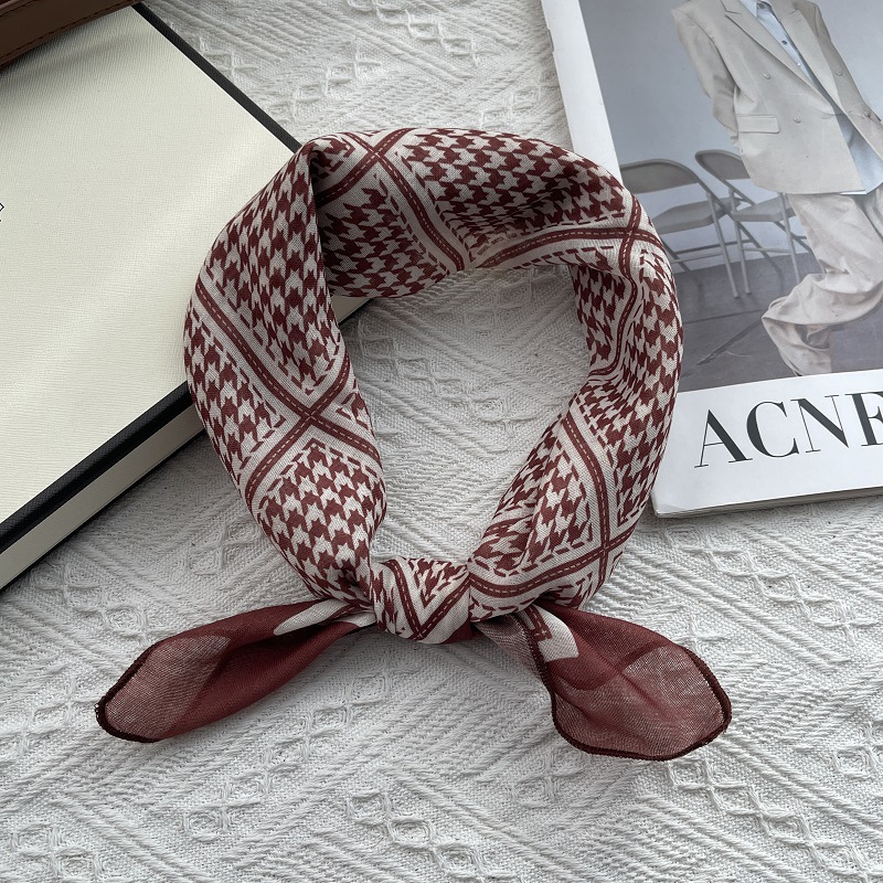 새로운 스타일 작은 스퀘어 코튼 리넨 한국 스타일 패션 올 매치 전문 작은 스카프 인쇄 헤드 스카프 여성의 봄과 여름 시즌 올 매치스토어 가기
