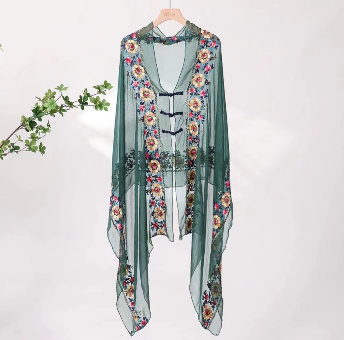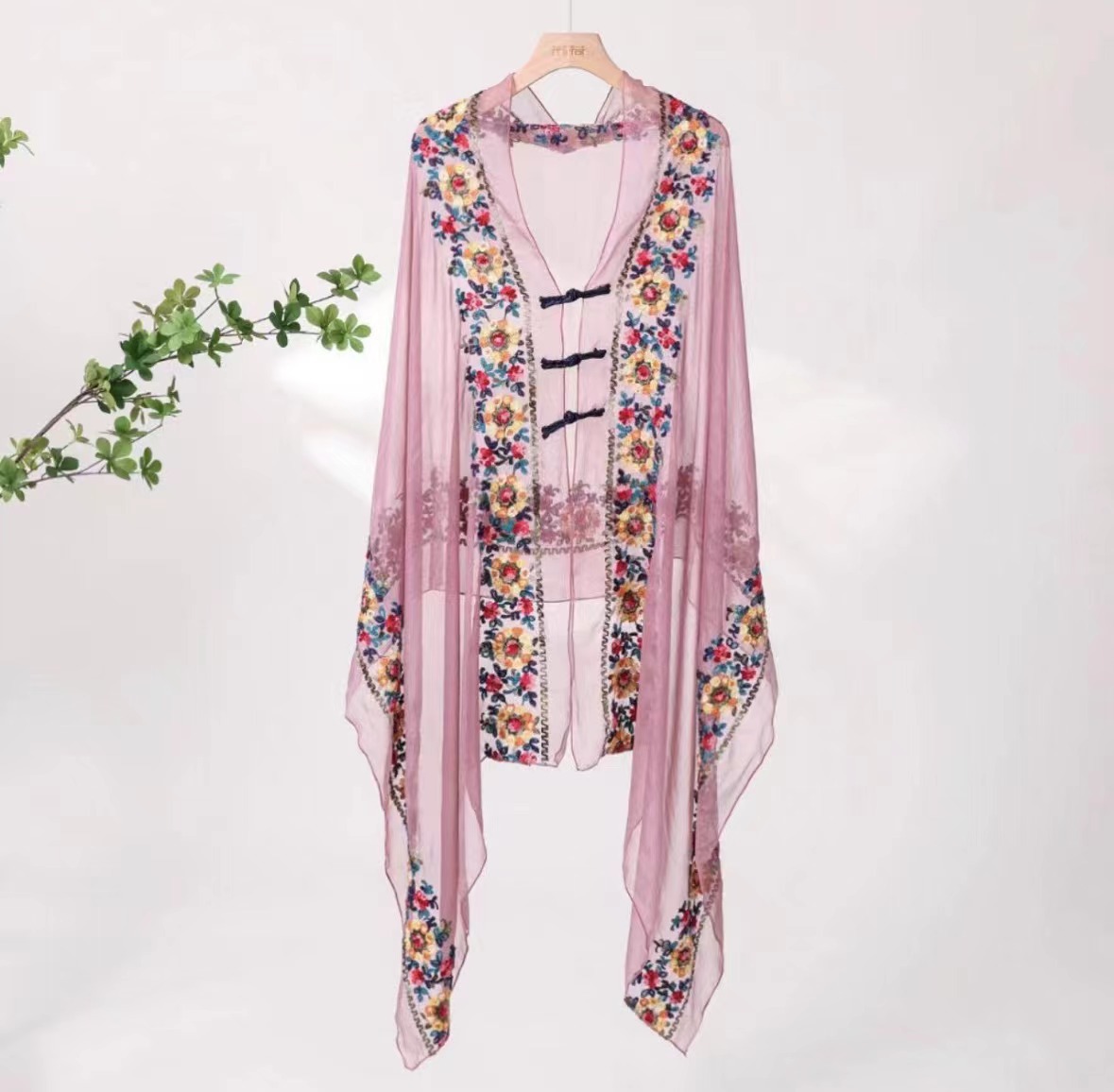목도리 여성 민족 스타일 여름 새로운 자수 유약 원사 유행 올 매치 태양 보호 의류 양산 여행 망토