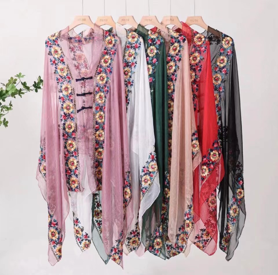 목도리 여성 민족 스타일 여름 새로운 자수 유약 원사 유행 올 매치 태양 보호 의류 양산 여행 망토스토어 가기