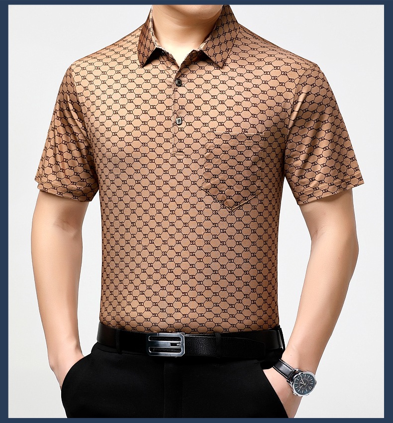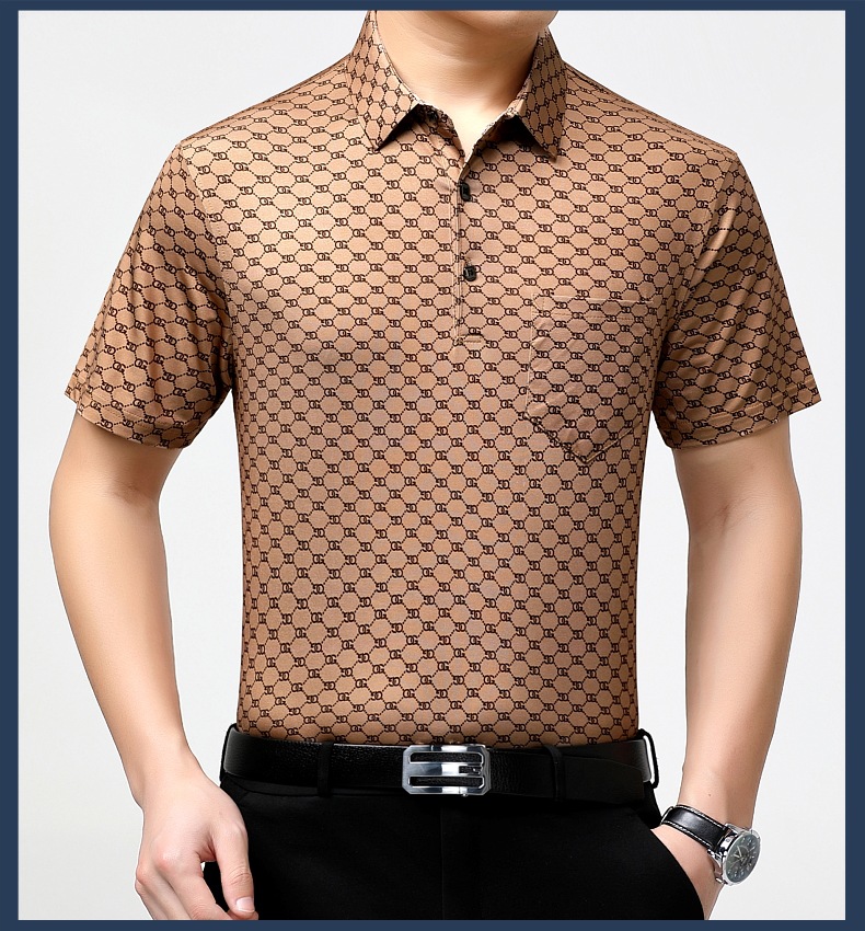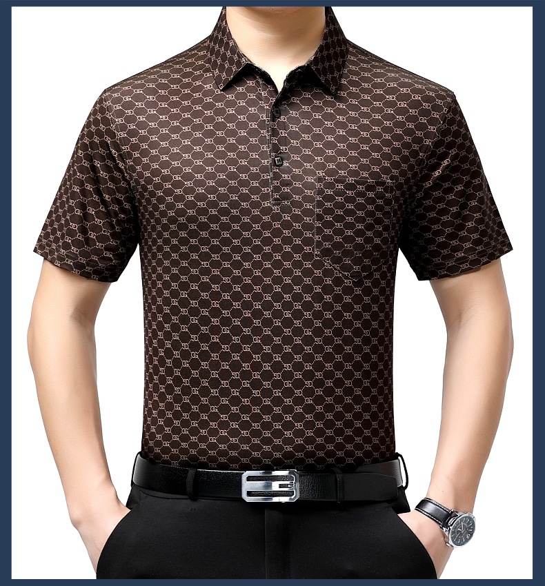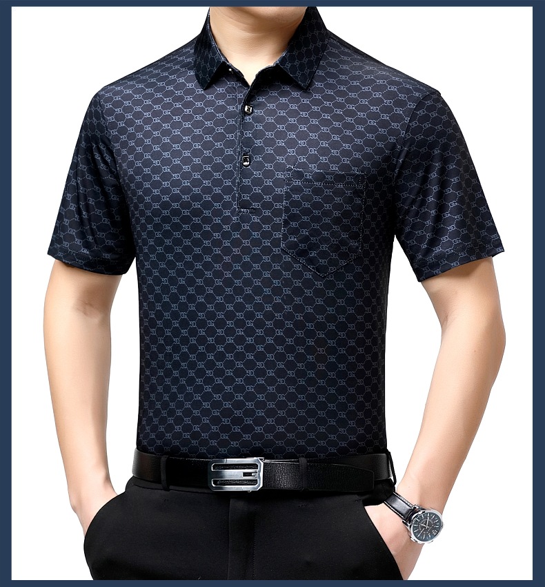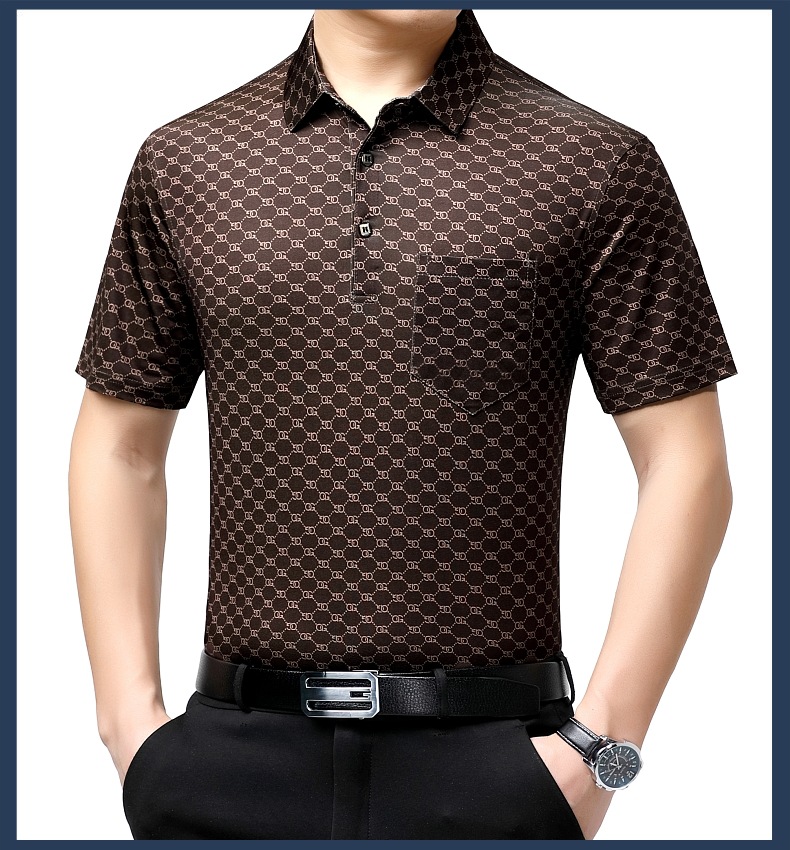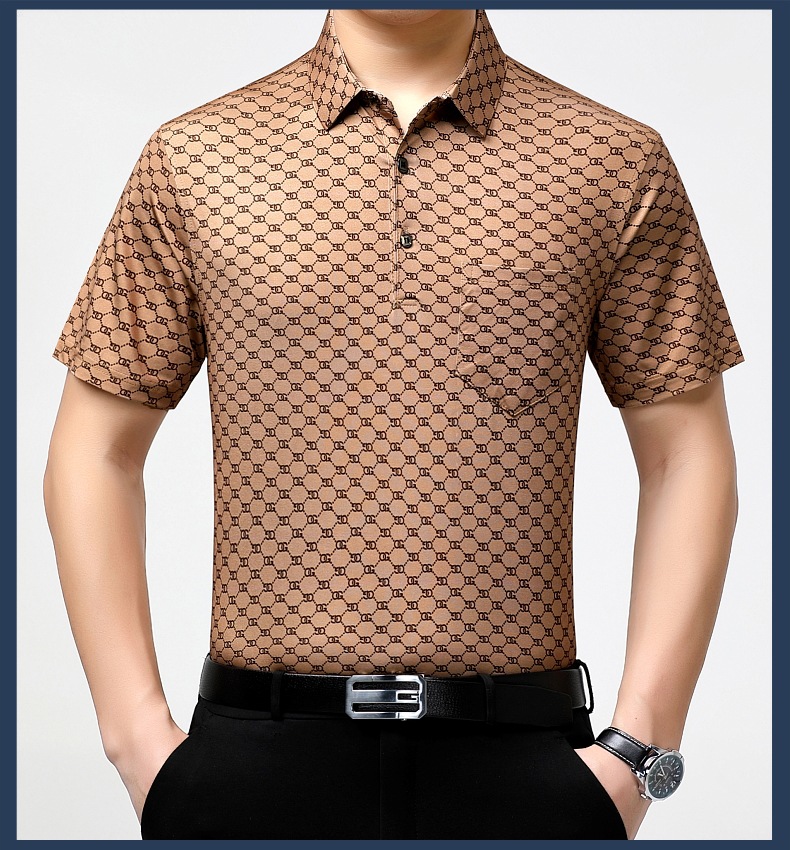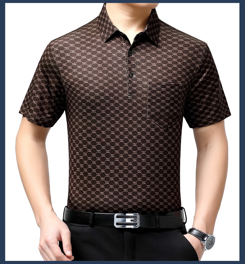 카운터 정품 뽕나무 실크 여름 새로운 남성 티셔츠 폴로 셔츠 비 다림질 비즈니스 올 매치 패션 반팔 탑스토어 가기