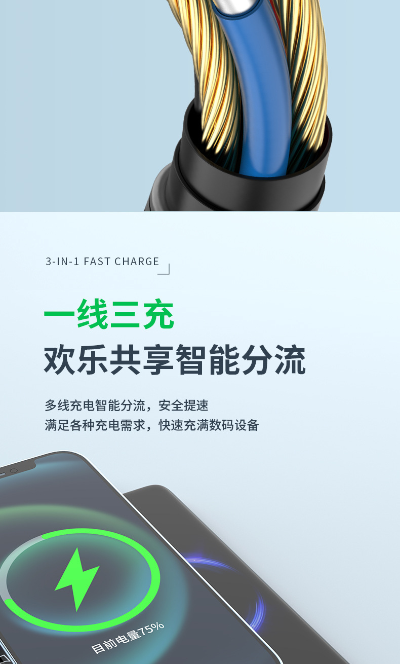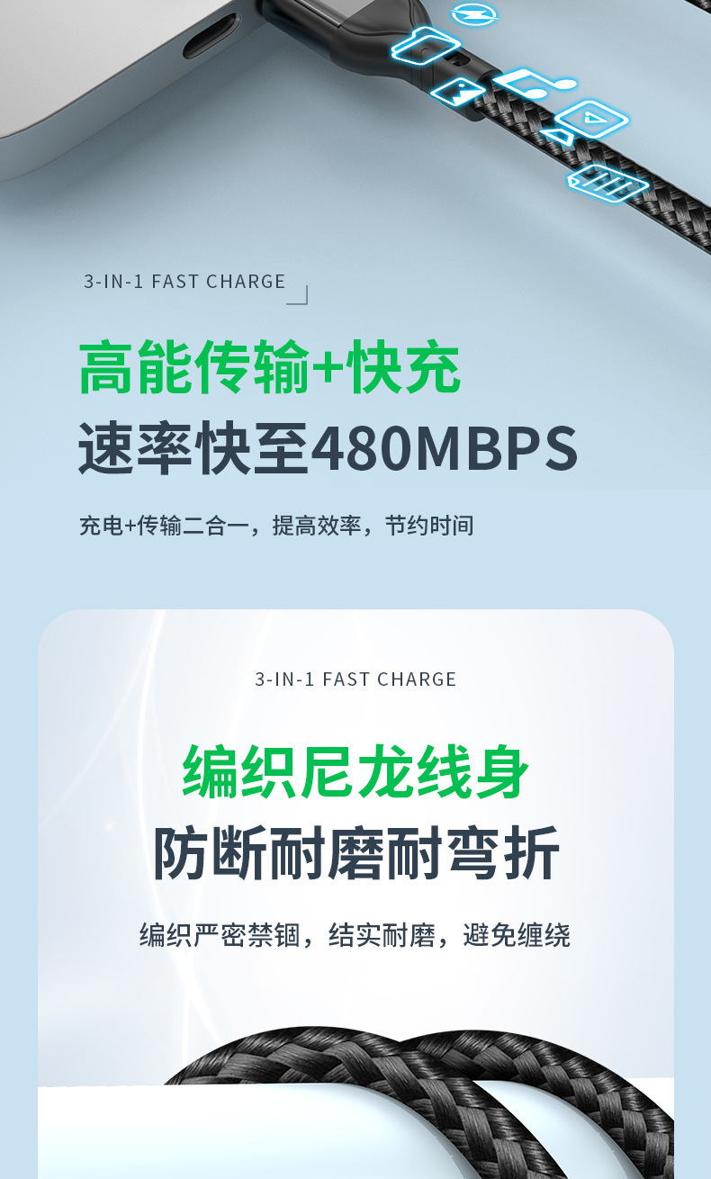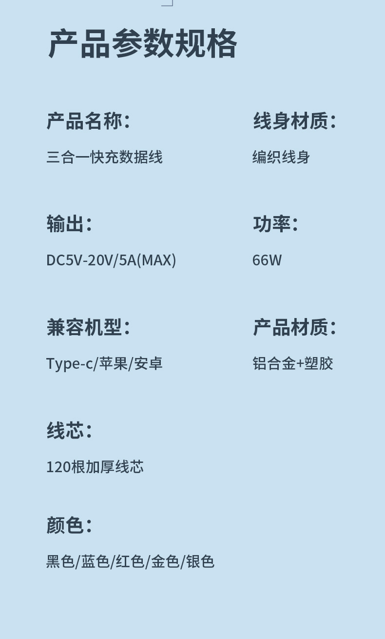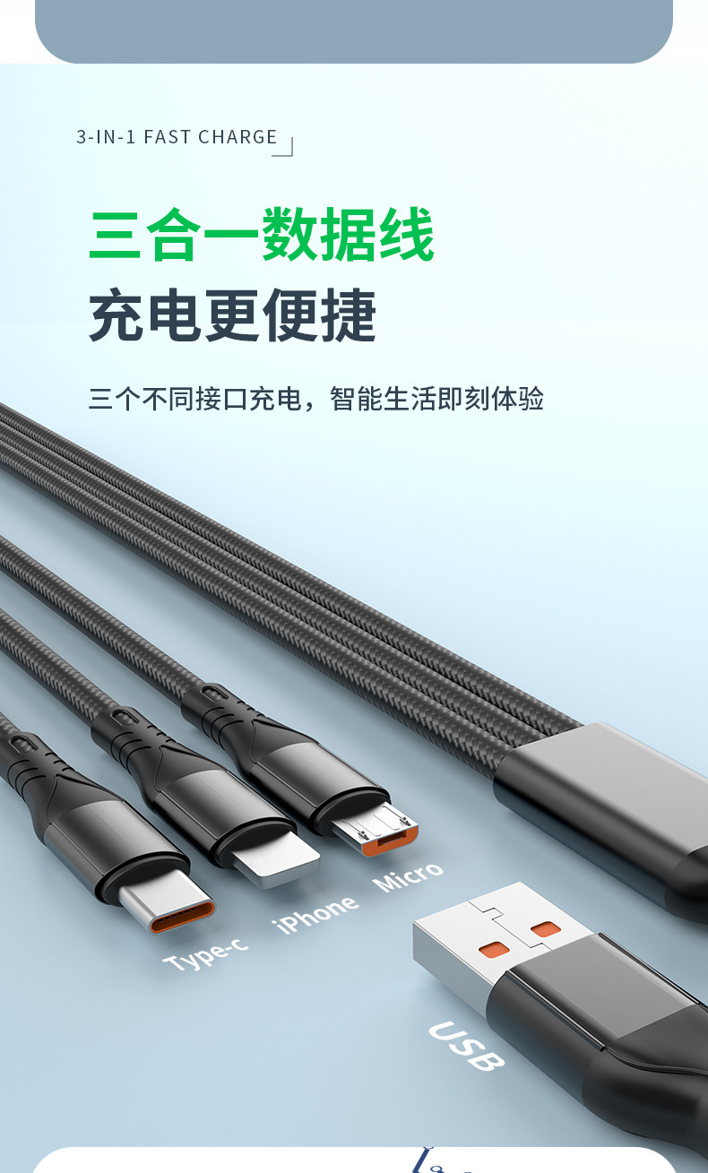 • 파란색 [나일론 직조 고속 충전 3-in-1 케이블] 3A