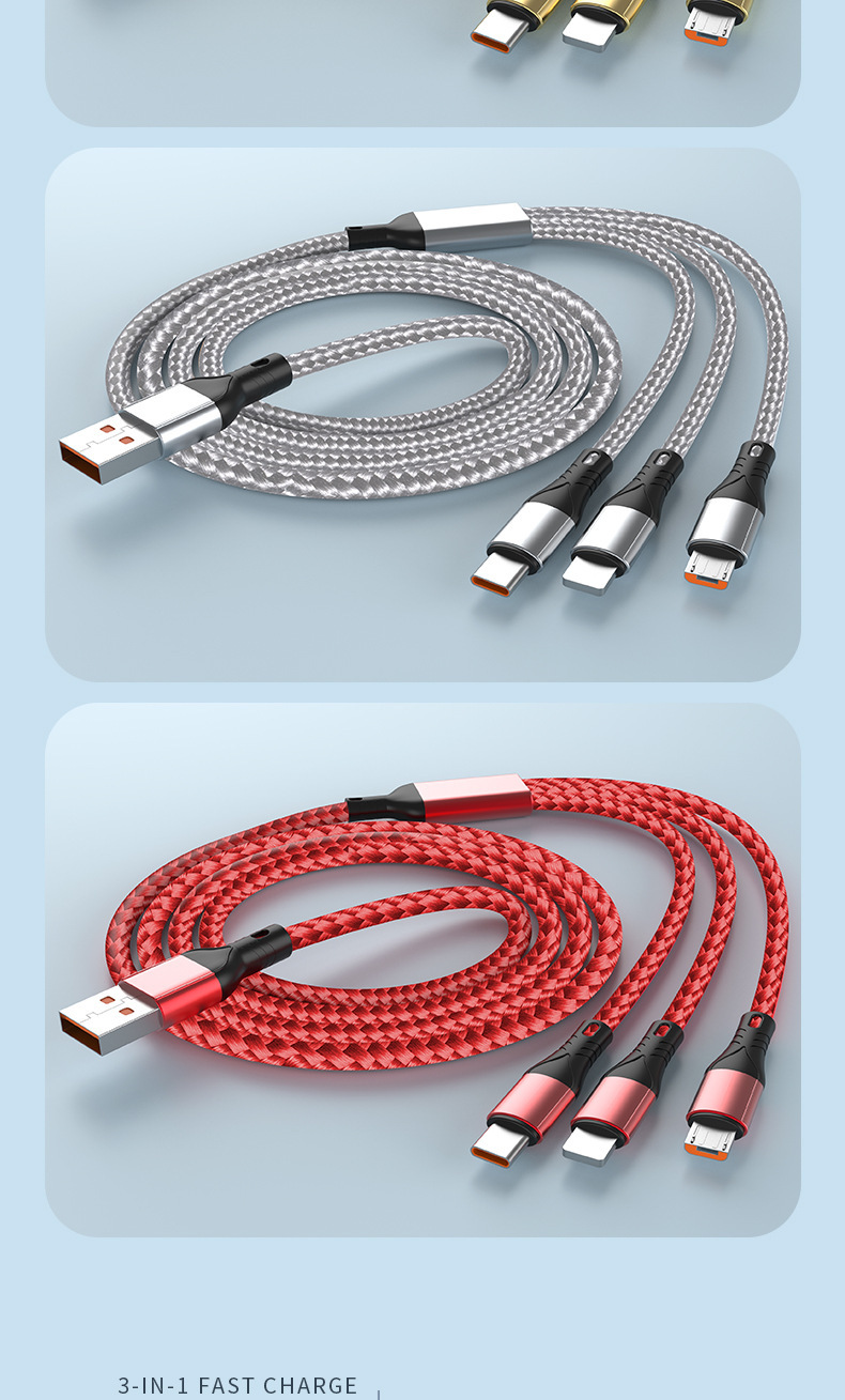 • 빨간색 [나일론 브레이드 고속 충전 3-in-1 케이블] 3A