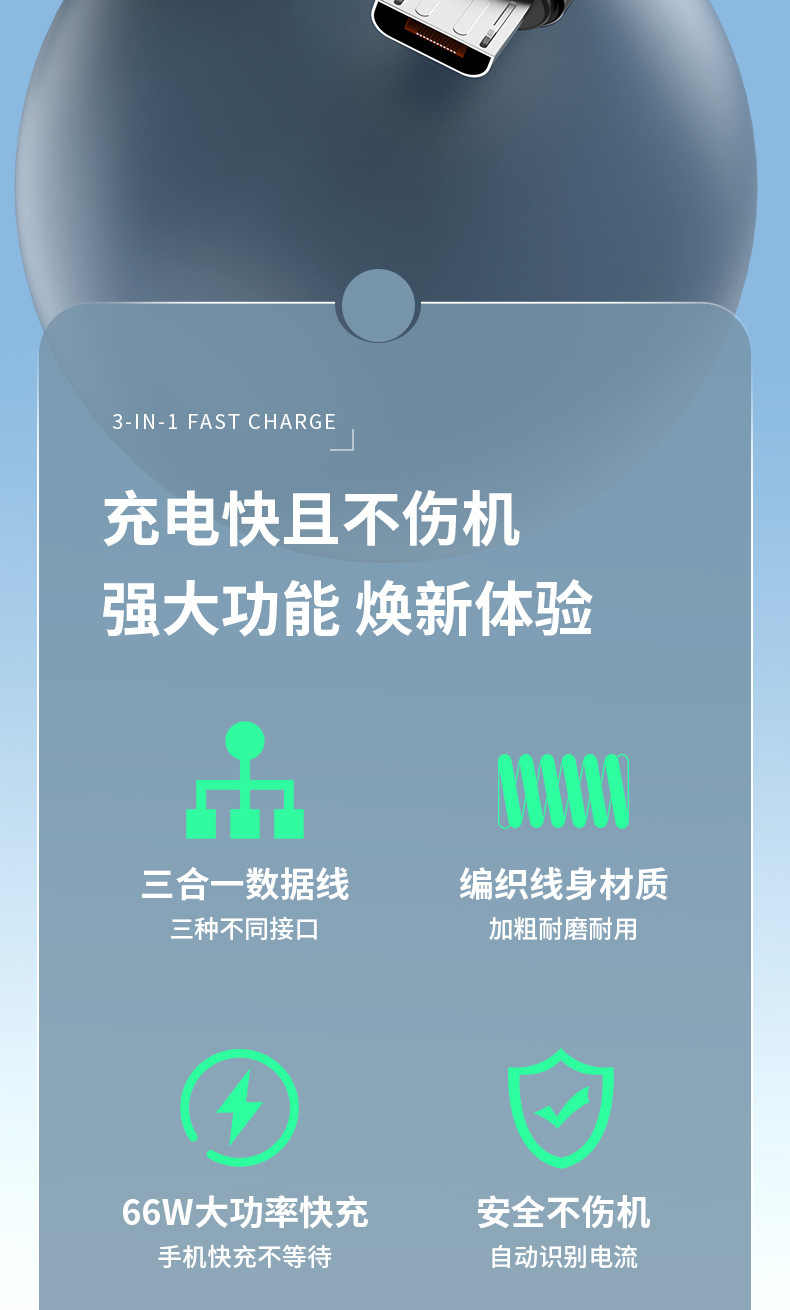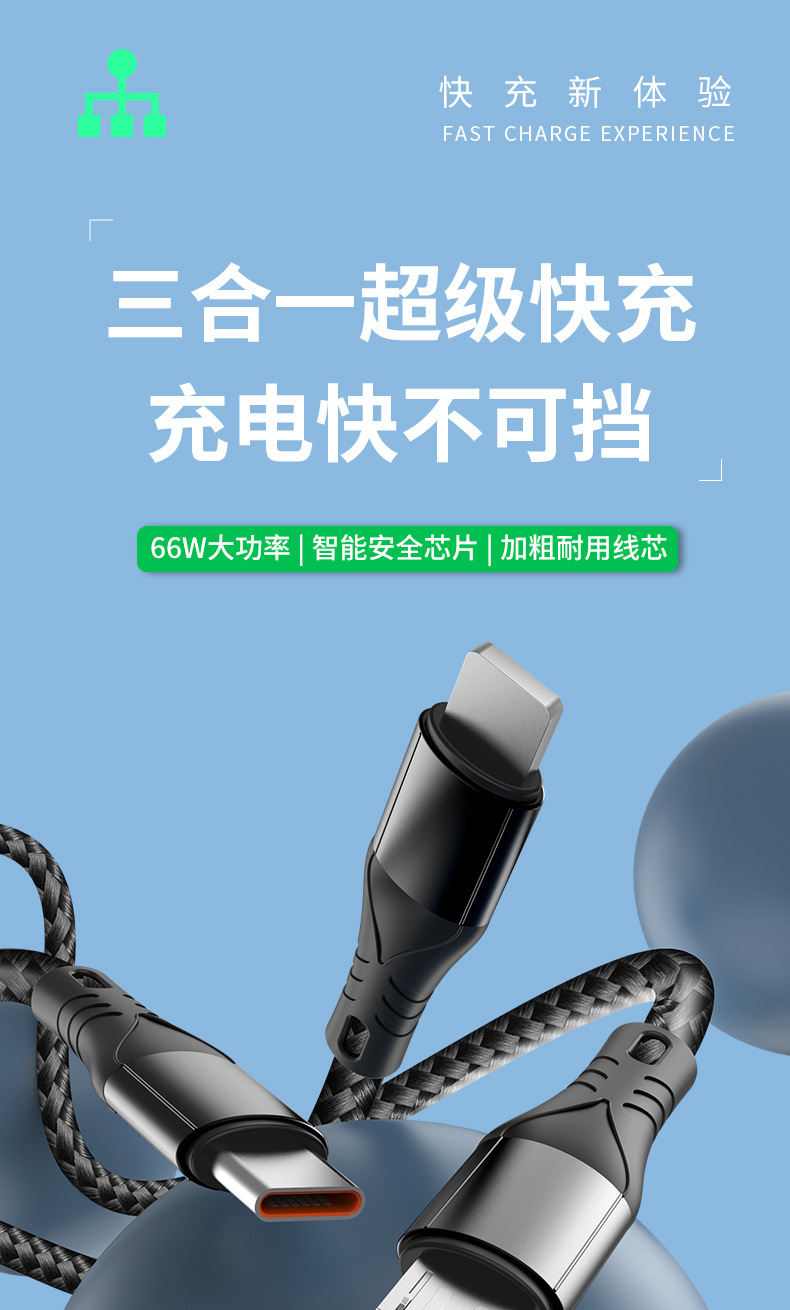 66w 1 대 3 데이터 케이블 3 대 1 휴대 전화 충전 라인 typec 초고속 충전 작은 선물 로고 회사스토어 가기