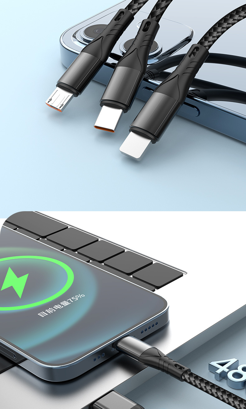 • 블랙 [나일론 브레이드 고속 충전 3-in-1 케이블] 3A