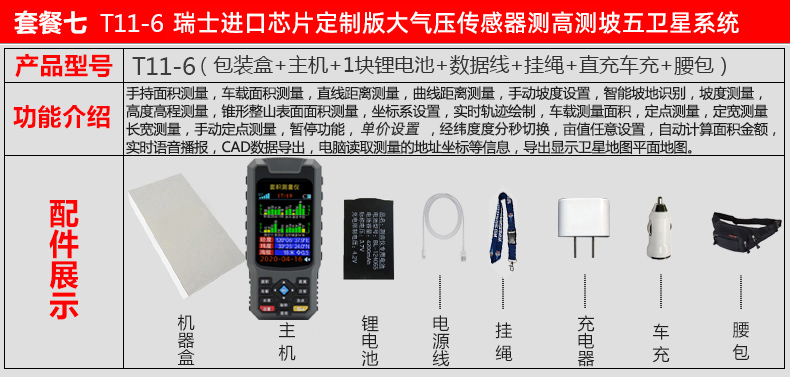 • 7T11-6 수입 칩 강화 버전 5개 위성 + 휴대용 차량 + 그래픽 + 자동 경사 + 기압 높이 측정