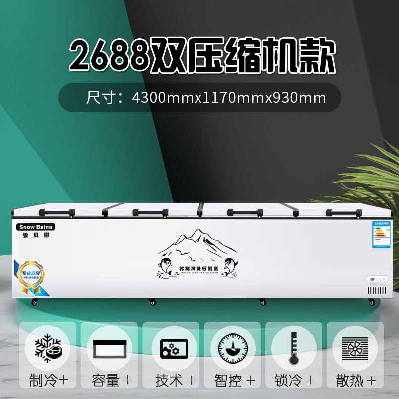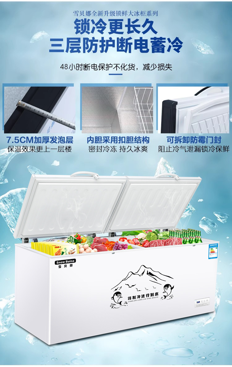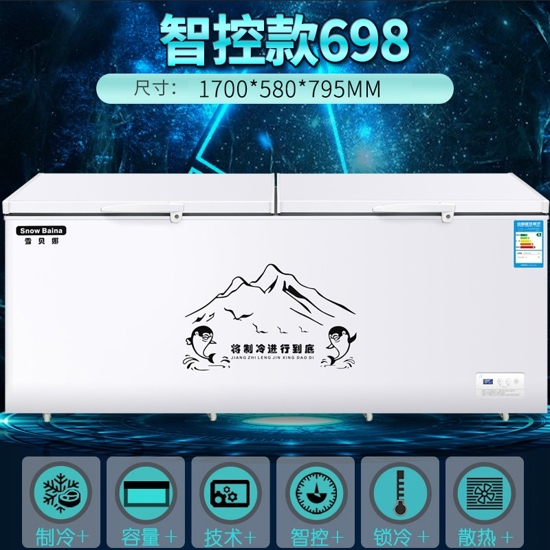 Xuebeina 수평 냉동고 상업용 대용량 냉동 냉동고 절연 캐비닛 가정용 디스플레이 캐비닛 이중 온도 절전