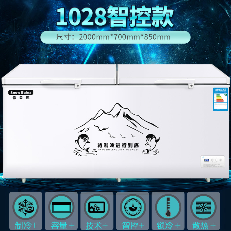 Xuebeina 수평 냉동고 상업용 대용량 냉동 냉동고 절연 캐비닛 가정용 디스플레이 캐비닛 이중 온도 절전스토어 가기