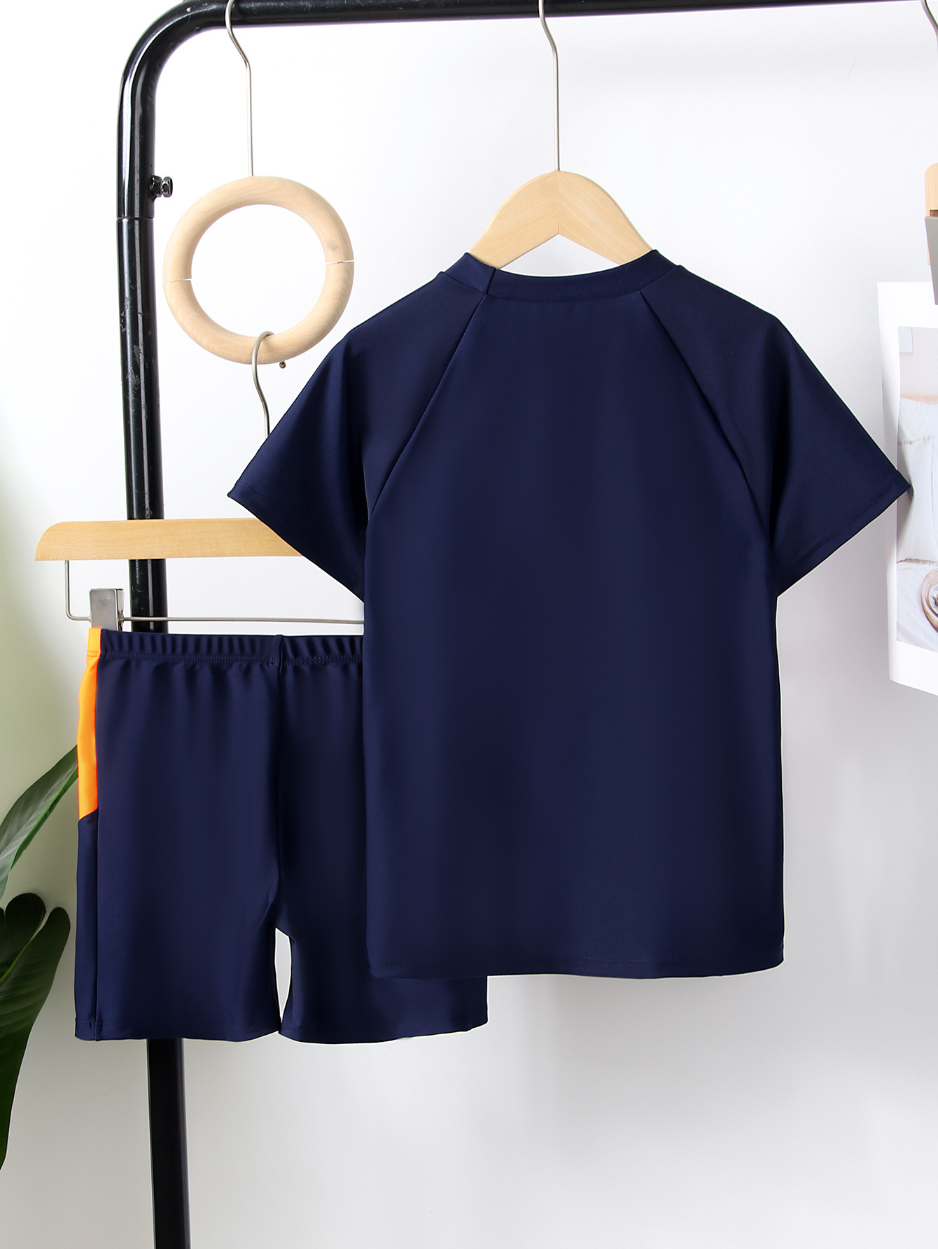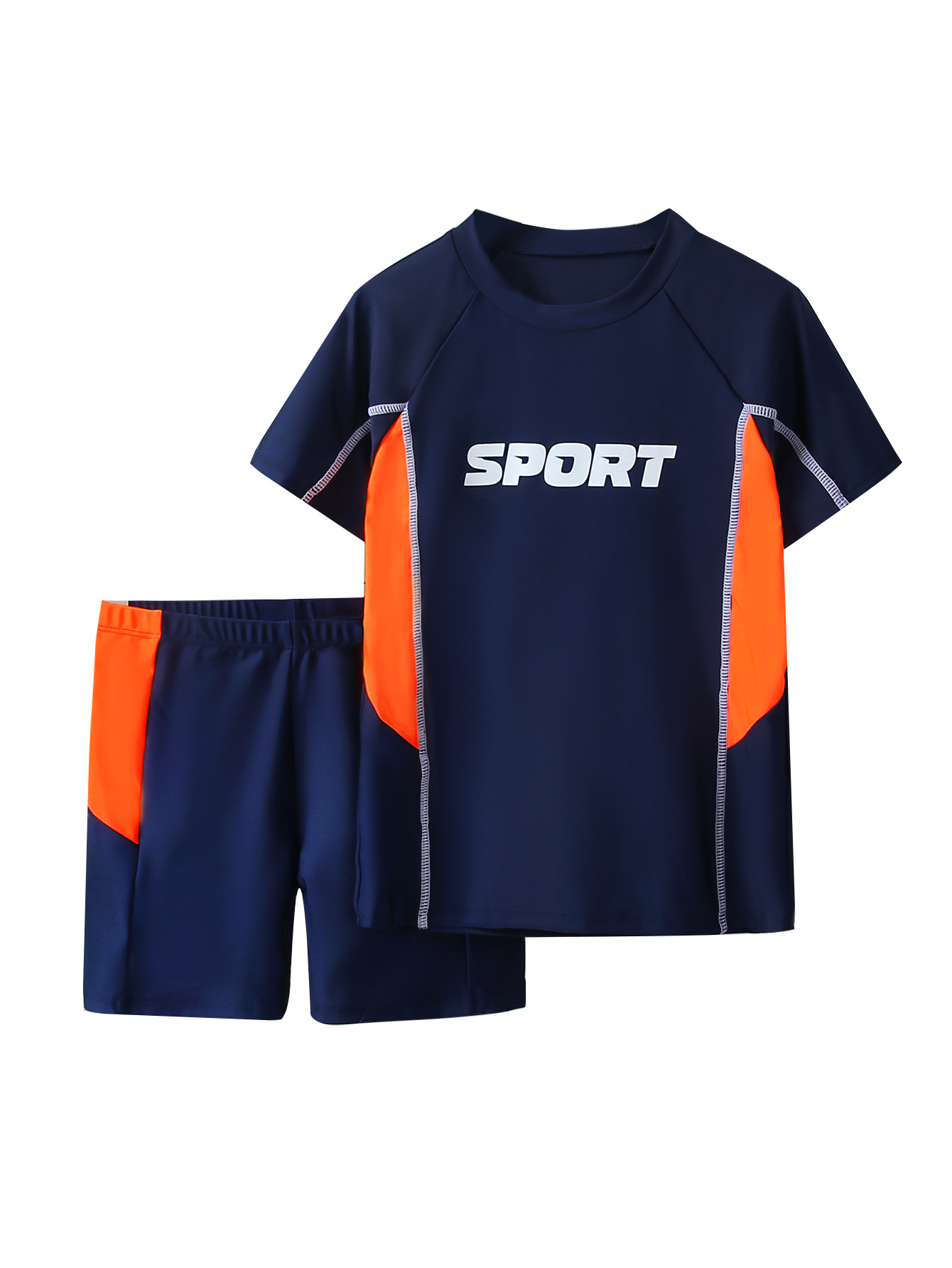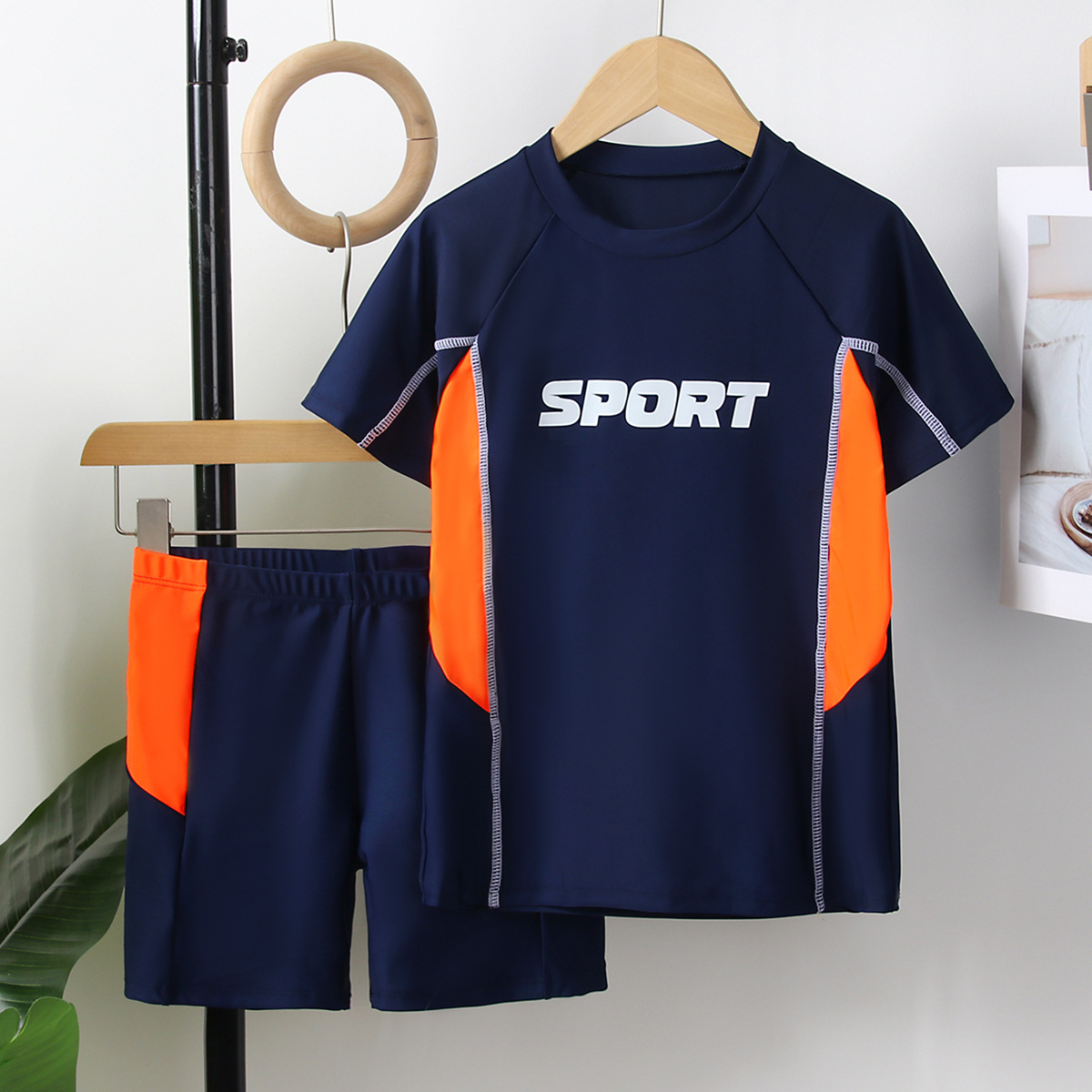 어린이 수영복 소년 반팔 분할 수영복 2025 새로운 단색 편지 스포츠 국경 소년 수영복