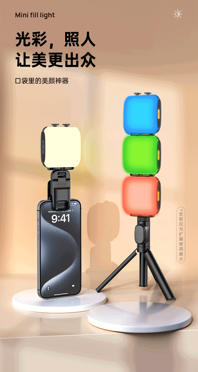 D4 휴대 전화 라이브 사진 풀 컬러 셀프 타이머 조명 램프 충전 휴대용 포켓 램프 조명 온라인 뷰티 RGB 축하