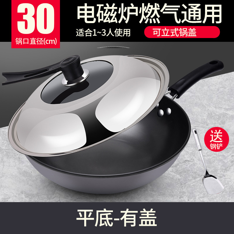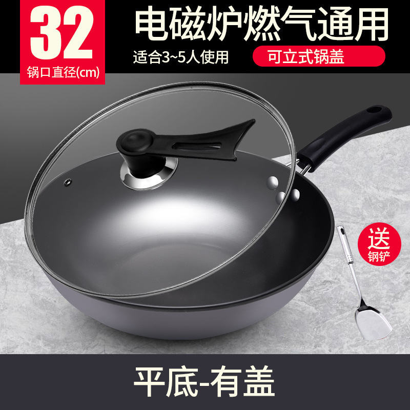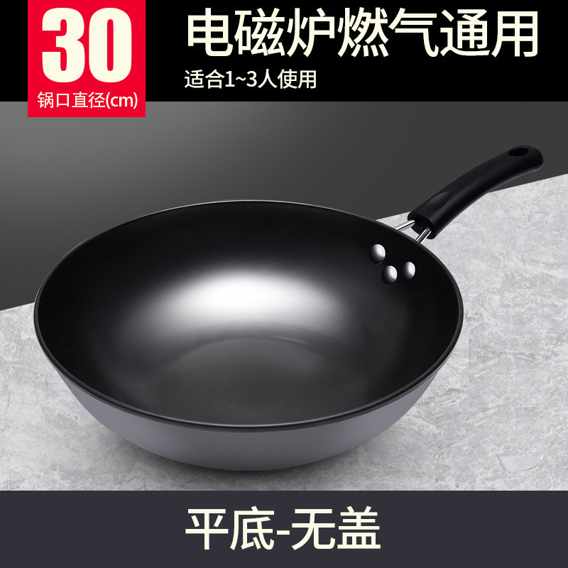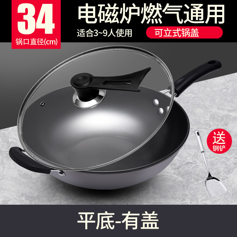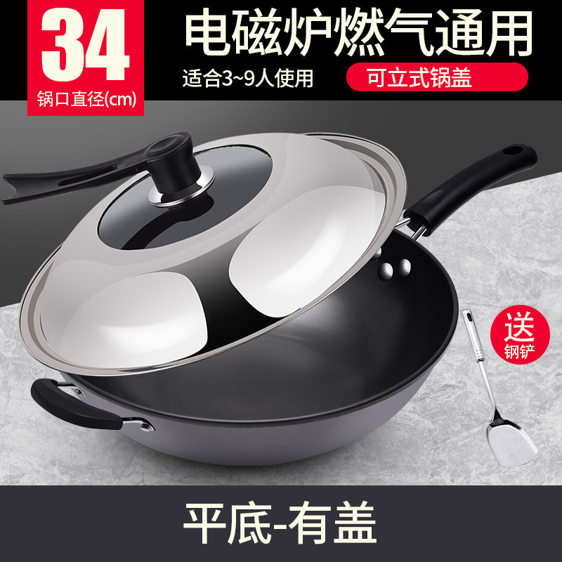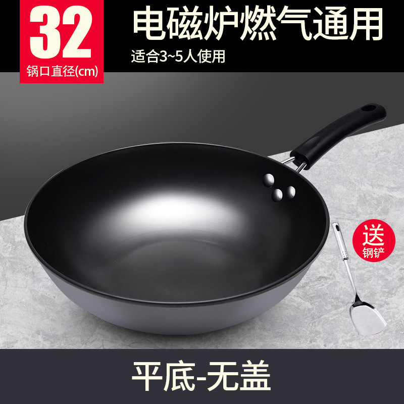철 냄비 구식 가정용 비 스틱 Wok Wok 코팅되지 않은 가스 스토브 Wok Wok 유도 쿠커 플랫 바닥 자오에 적합스토어 가기