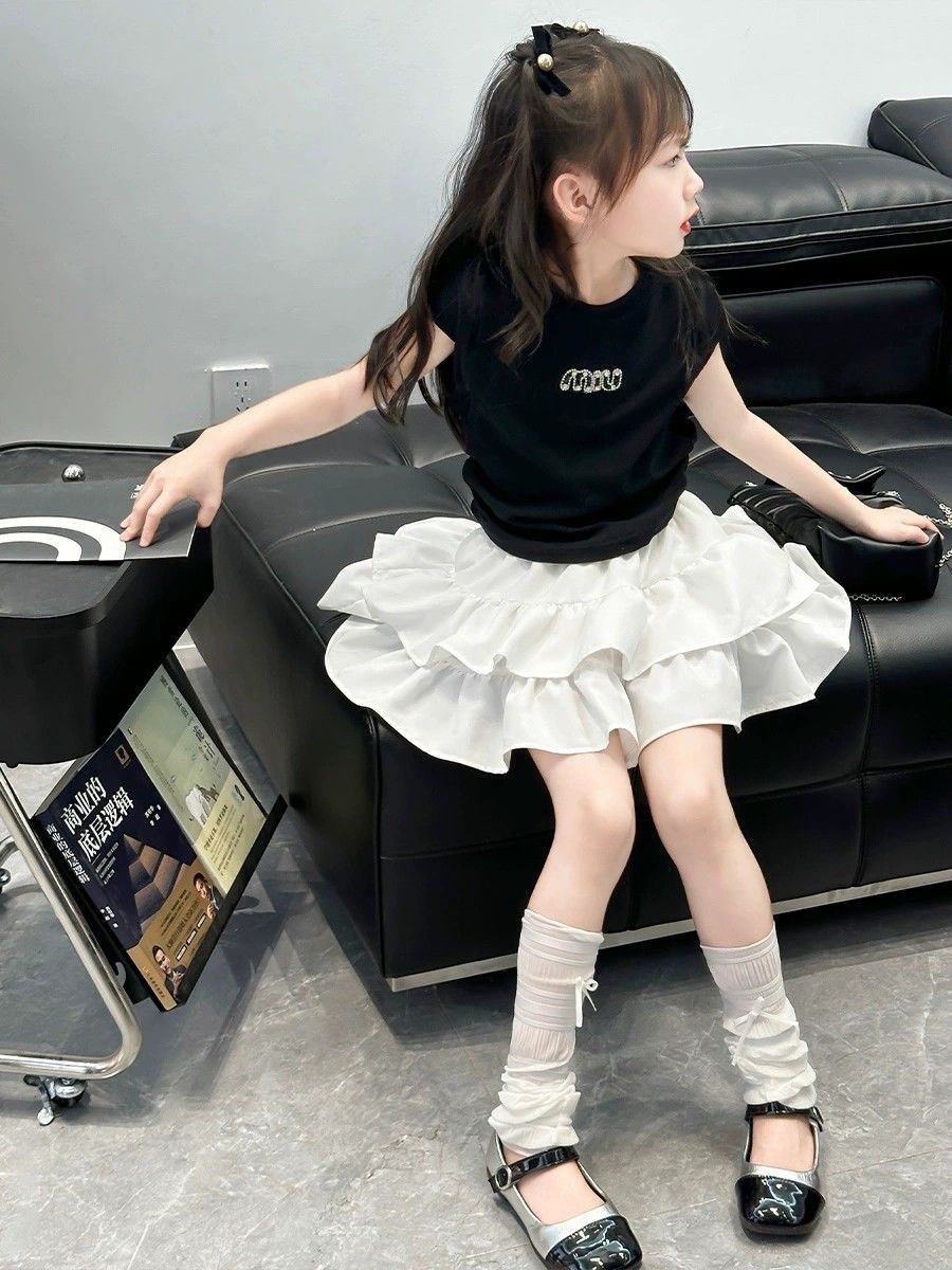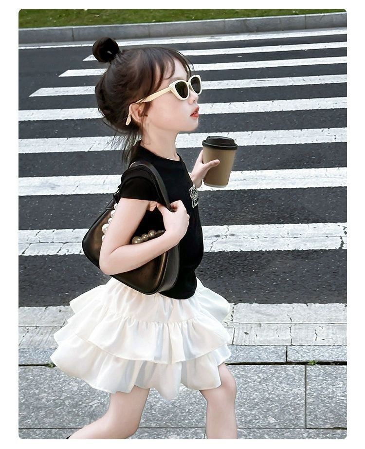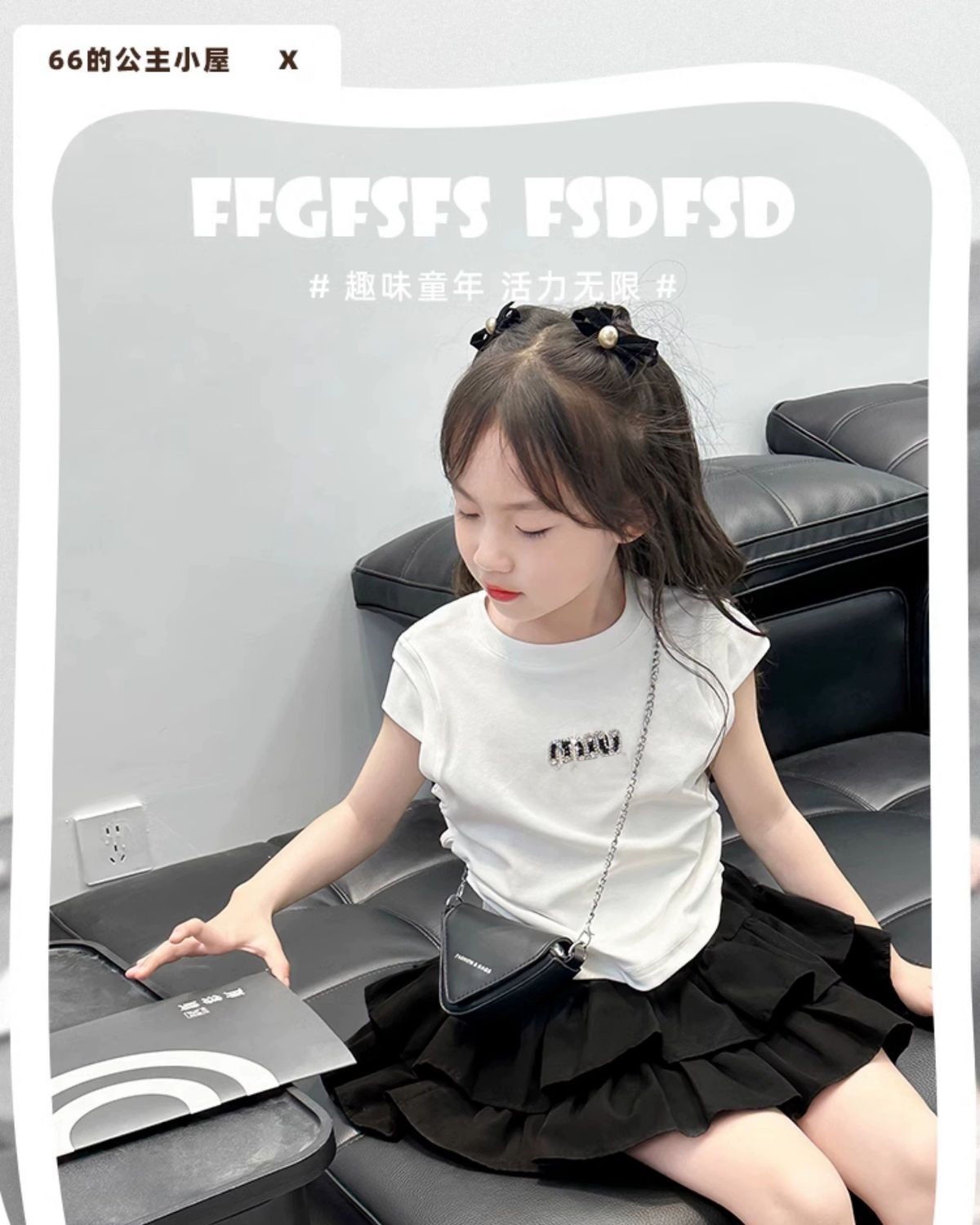여자 여름 반팔 티셔츠 아기의 서양식 어린이 성격 유행 인터넷 인기있는 불규칙한 편지 백리스 반소매스토어 가기