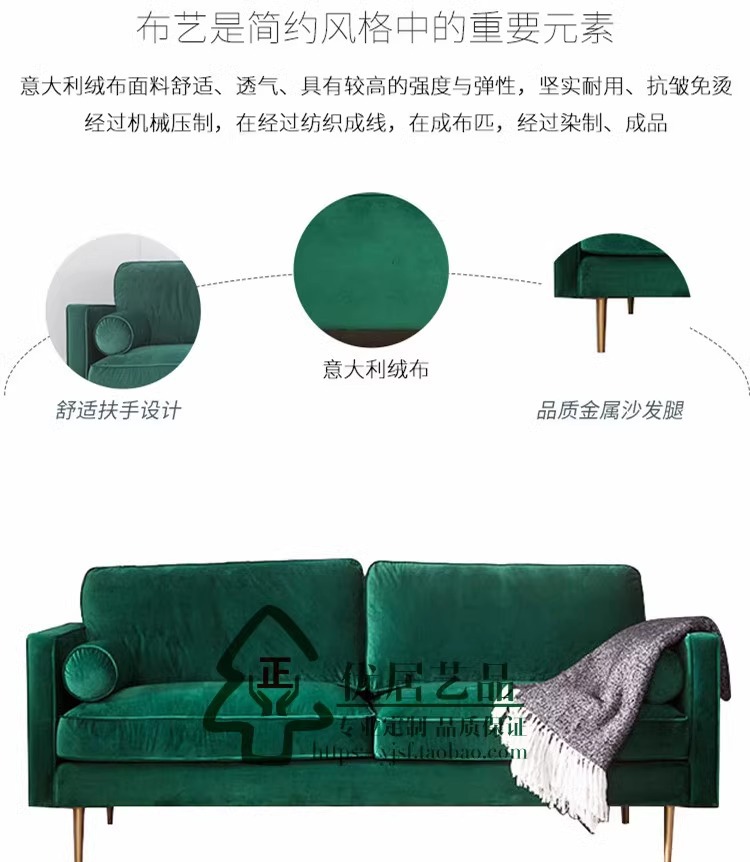 북유럽 포스트 모던 디자이너 패브릭 소파 레트로 벨벳 라이트 럭셔리 작은 아파트 거실 의류 매장 스트레이트 로우 소파