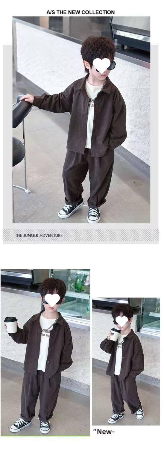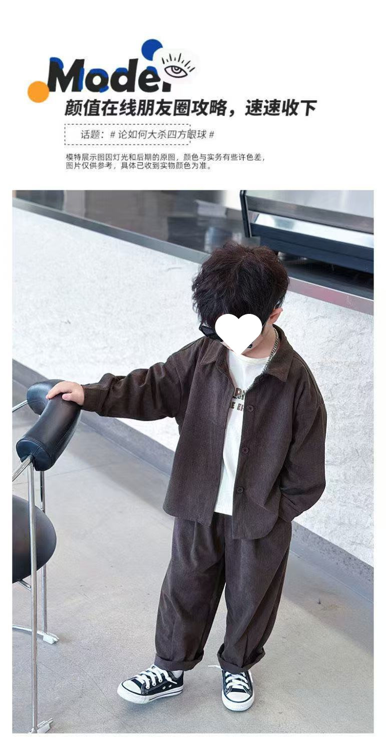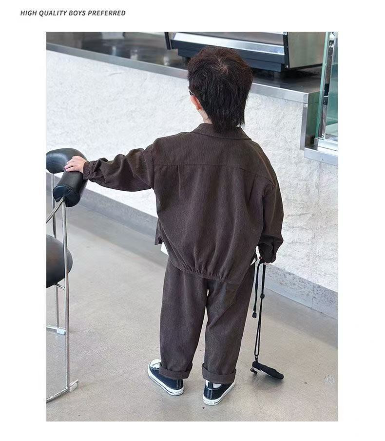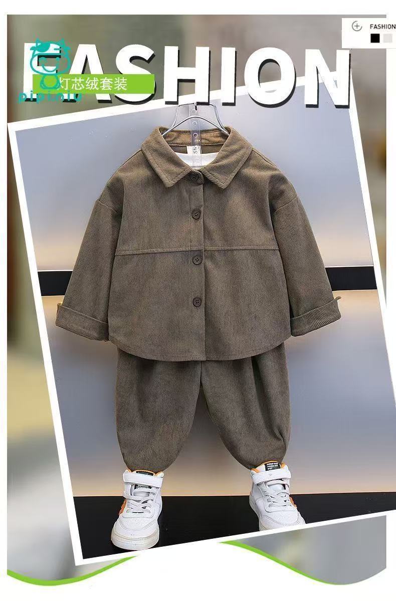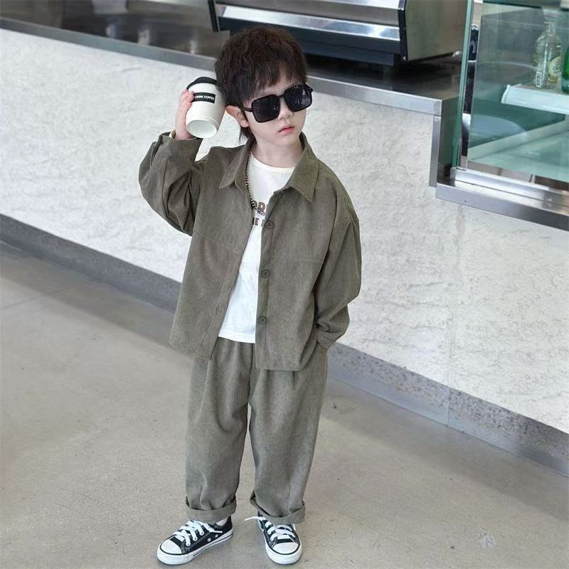 소년 봄과 가을 코듀로이 세트 2025 새 셔츠 아기 그물 붉은 튀김 거리 투피스 세트 조수스토어 가기