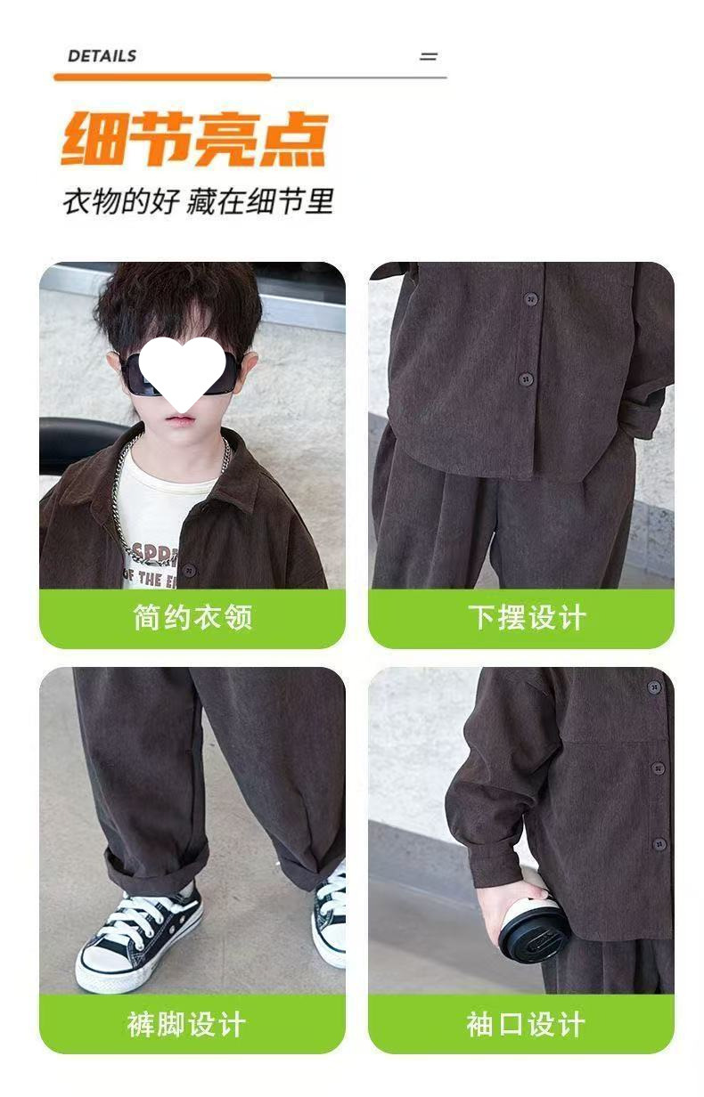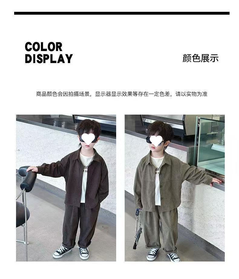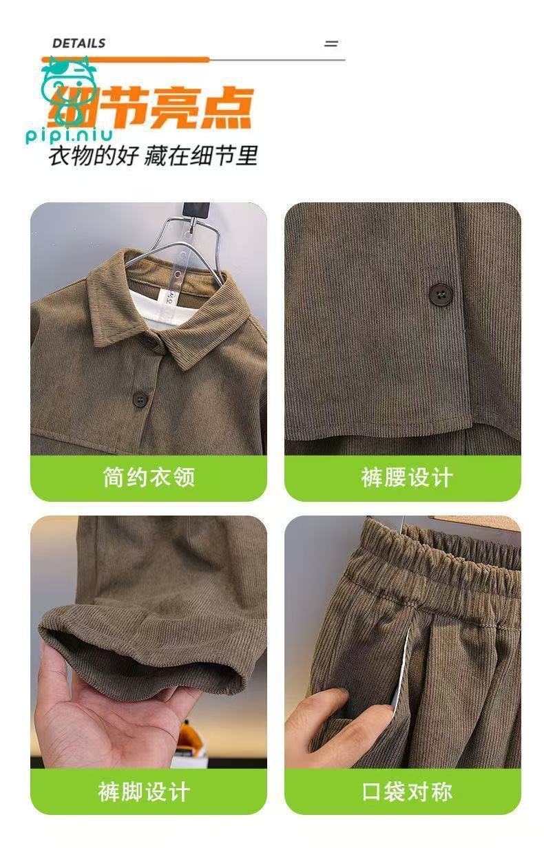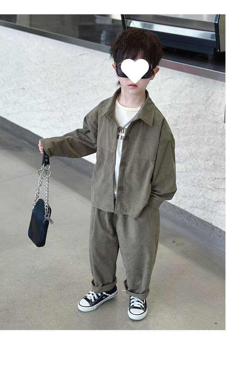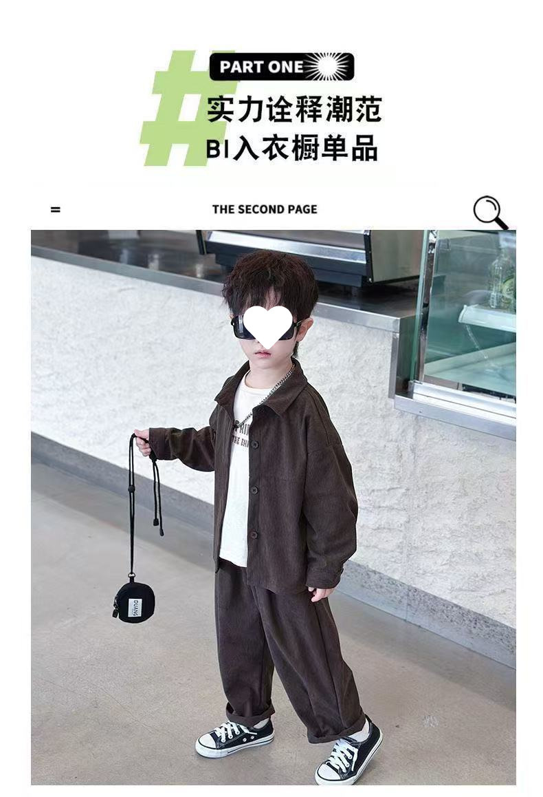 소년 봄과 가을 코듀로이 세트 2025 새 셔츠 아기 그물 붉은 튀김 거리 투피스 세트 조수스토어 가기