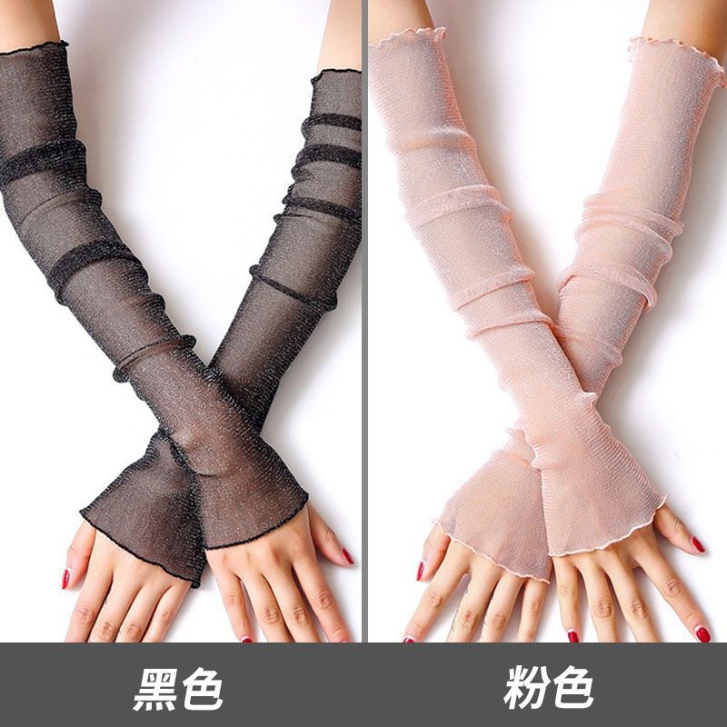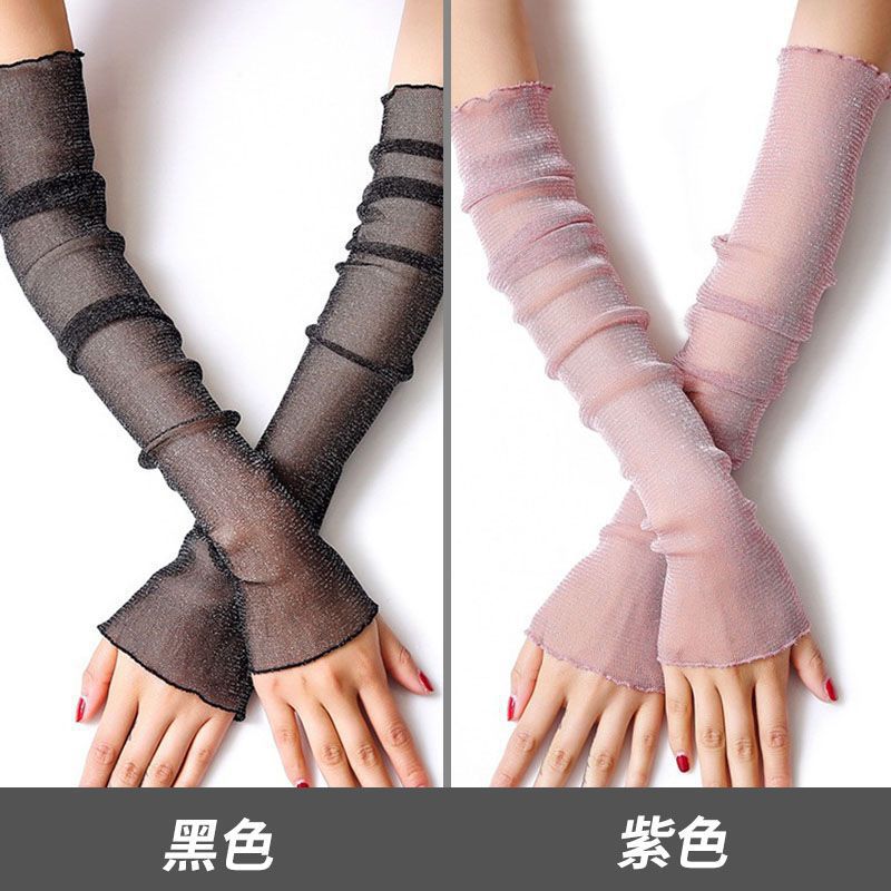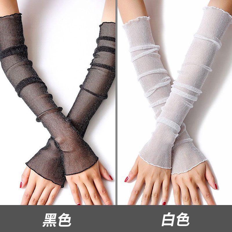 여름 얼음 실크 태양 보호 소매 여성 한국 팔 보호 소매 얇은 소매 스트레치 긴 그늘 메쉬 양말 발 커버