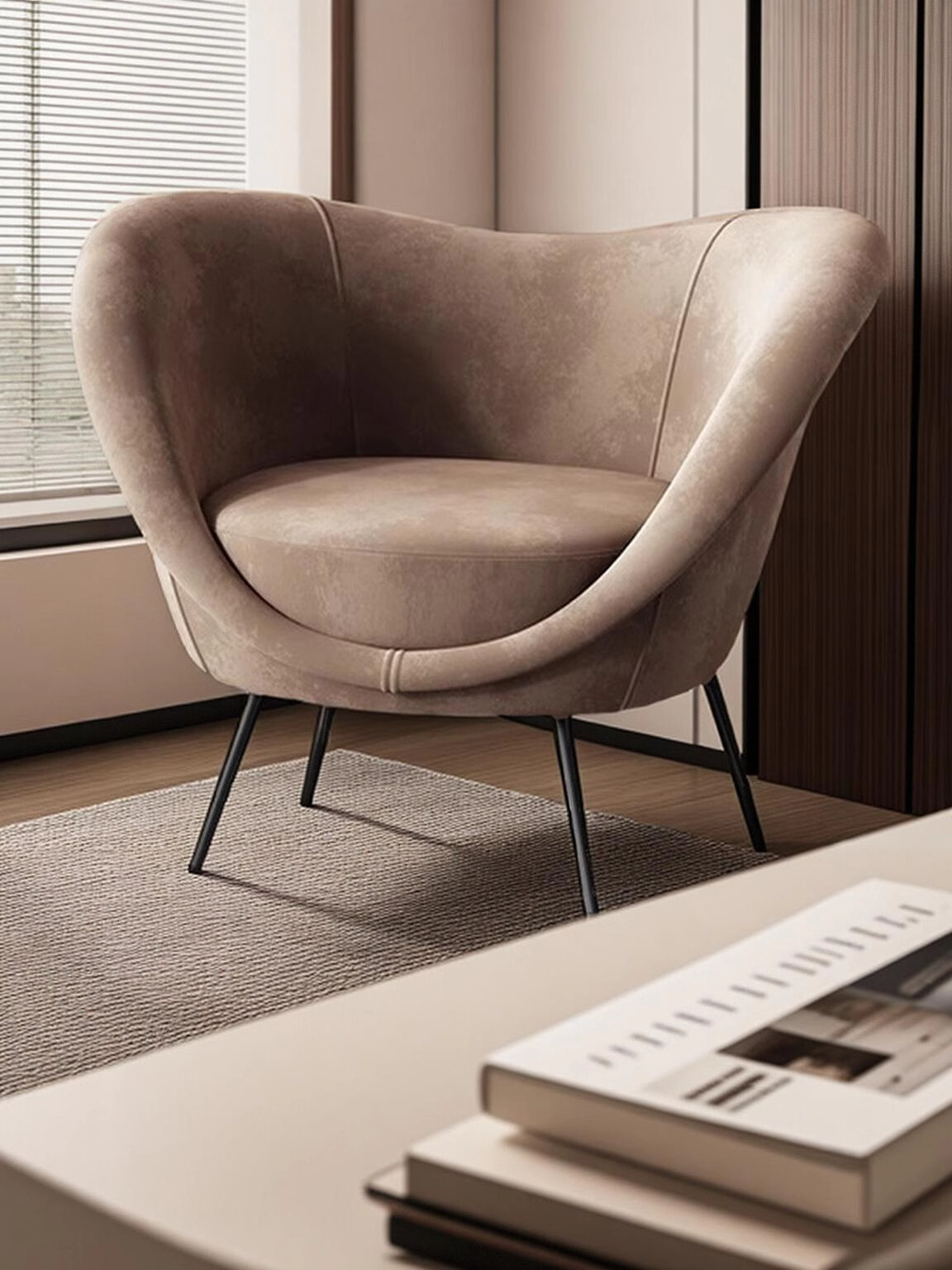 • 모란디 브라운 프로스트 벨벳 싱글 체어