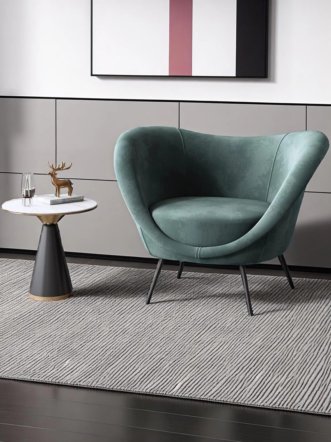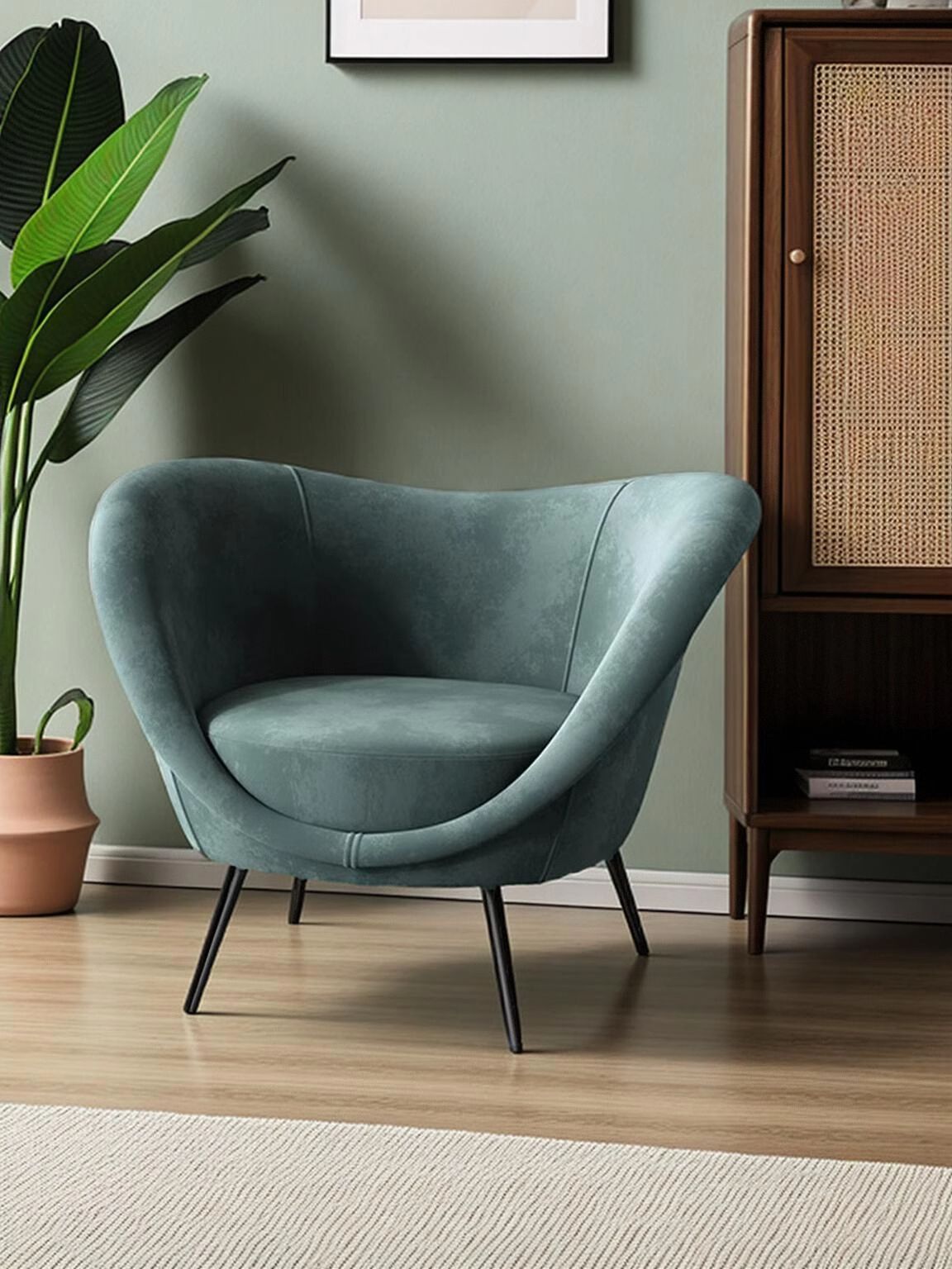 • 모란디 그린 프로스트 벨벳 싱글 체어