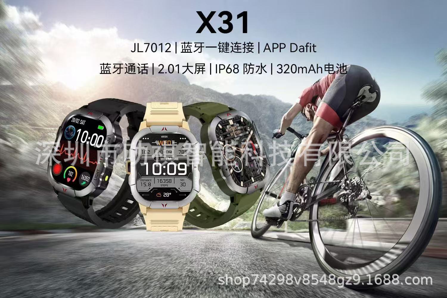 국경 X31 새로운 스마트 시계 야외 LED 조명 HD 대형 화면 블루투스 통화 심박수 혈액 산소 건강 테이블