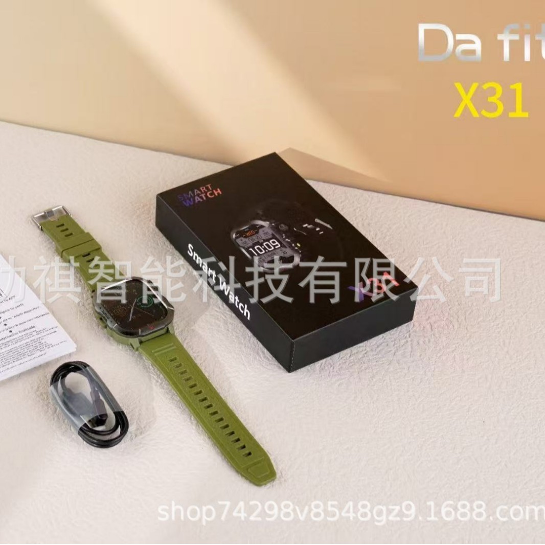 국경 X31 새로운 스마트 시계 야외 LED 조명 HD 대형 화면 블루투스 통화 심박수 혈액 산소 건강 테이블스토어 가기