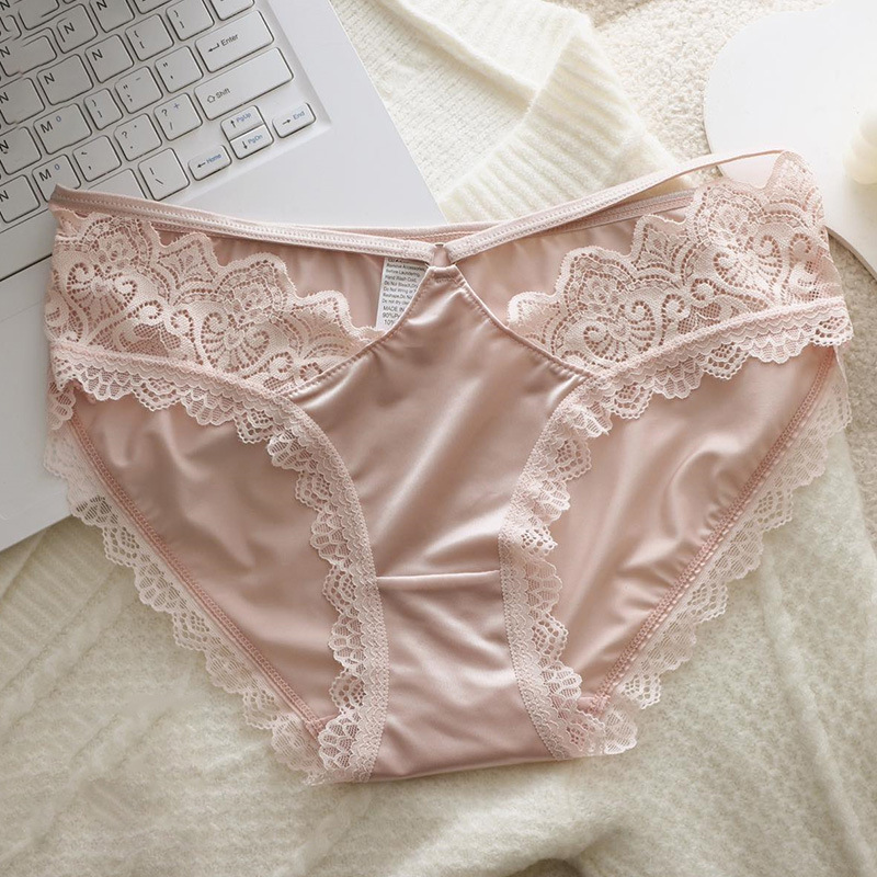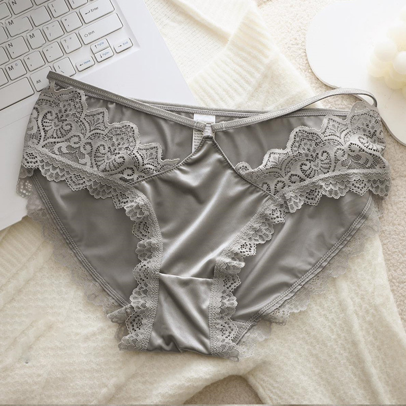 새로운 섹시한 레이스 자수 레이스 속옷 여성의 얇은 벨트 빈 순수한 욕망 소녀 아이스 실크 브리프 도매