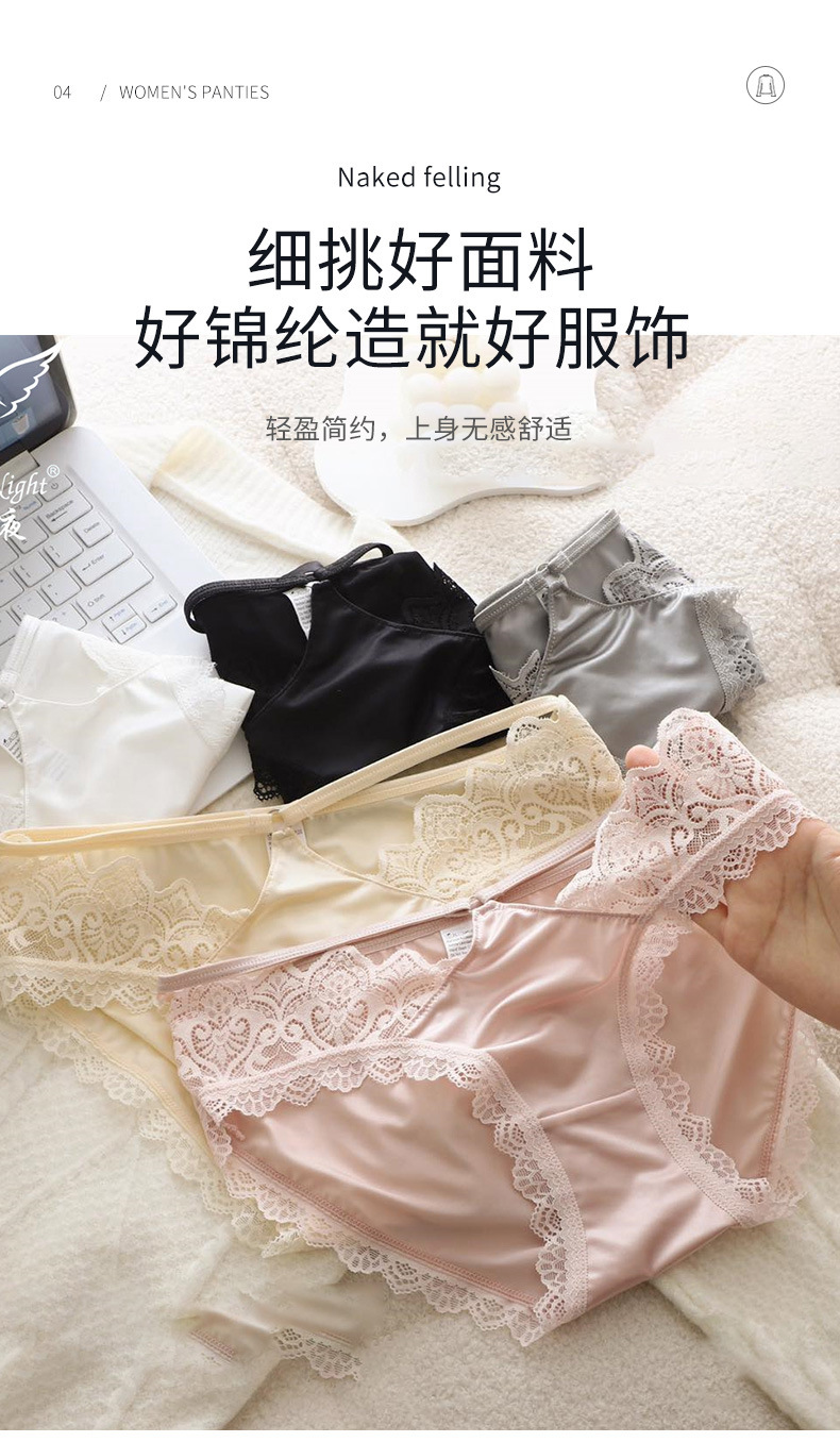 새로운 섹시한 레이스 자수 레이스 속옷 여성의 얇은 벨트 빈 순수한 욕망 소녀 아이스 실크 브리프 도매스토어 가기