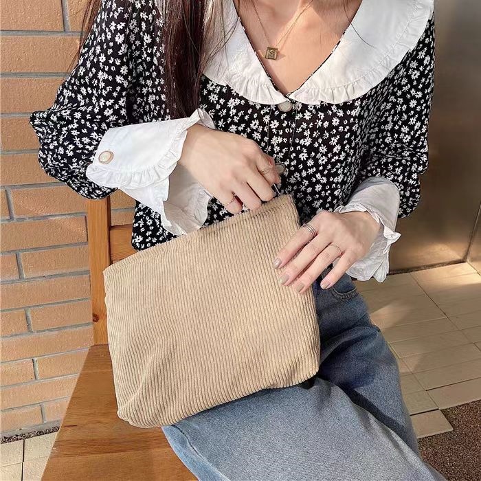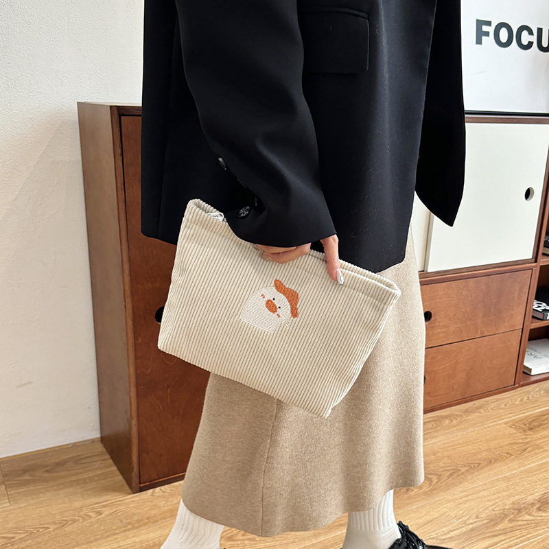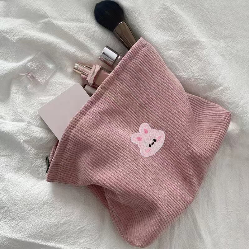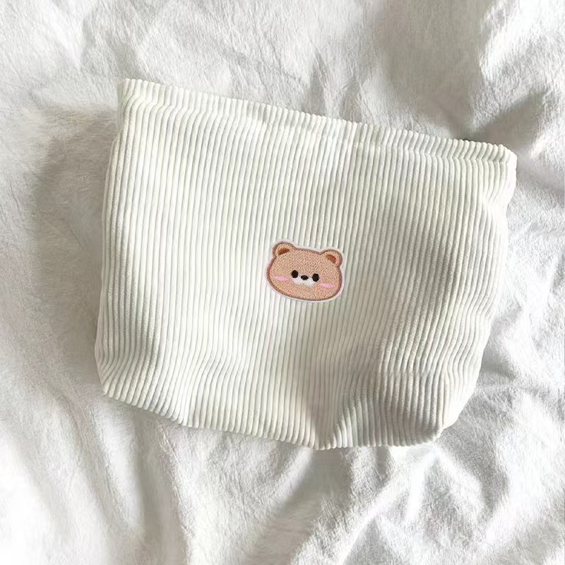 코듀로이 만화 자수 화장품 가방 간단한 일본 휴대용 휴대용 화장품 보관 가방 내부 가방 국경스토어 가기
