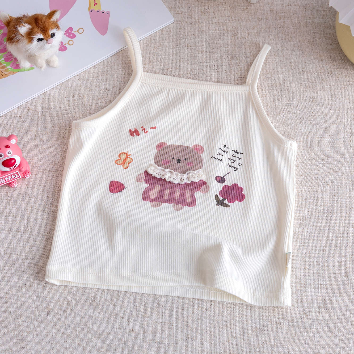 소녀 카미솔 스트레치 조끼 2025 여름 만화 인쇄 아기 스타일 민소매 여름 탑 베이스 셔츠스토어 가기