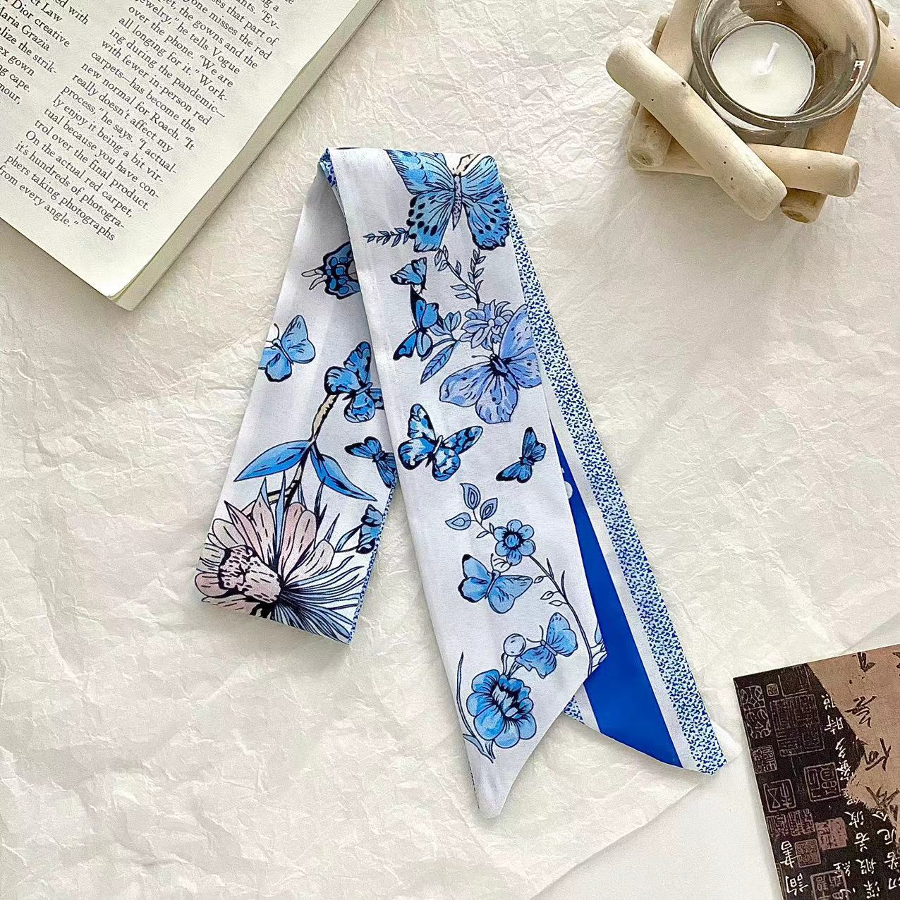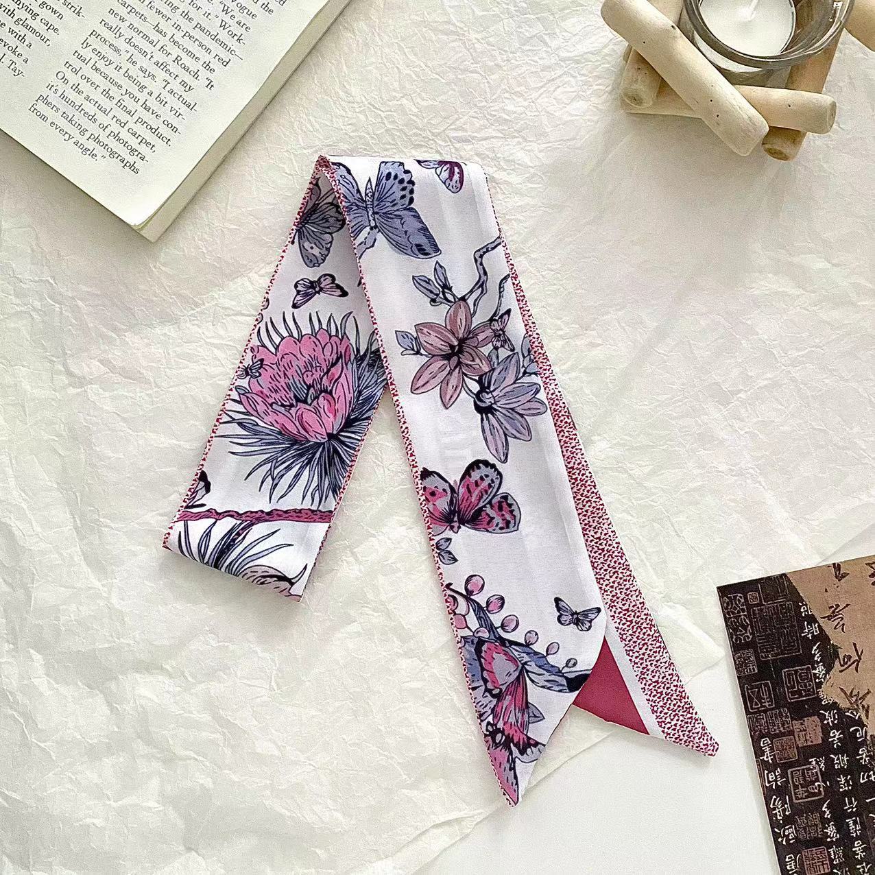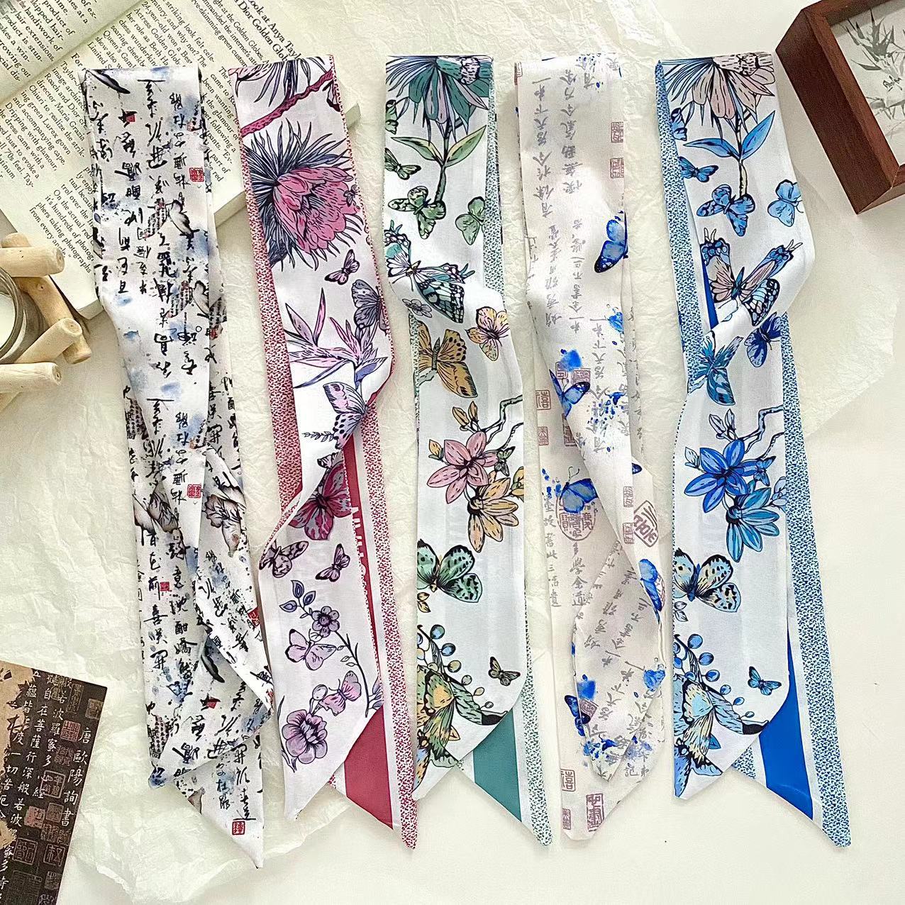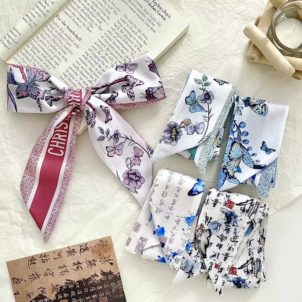 고급 꽃 나비 스카프 프랑스 우아한 머리 넥타이 가방 핸들 리본 새로운 모든 매치 스카프 장식