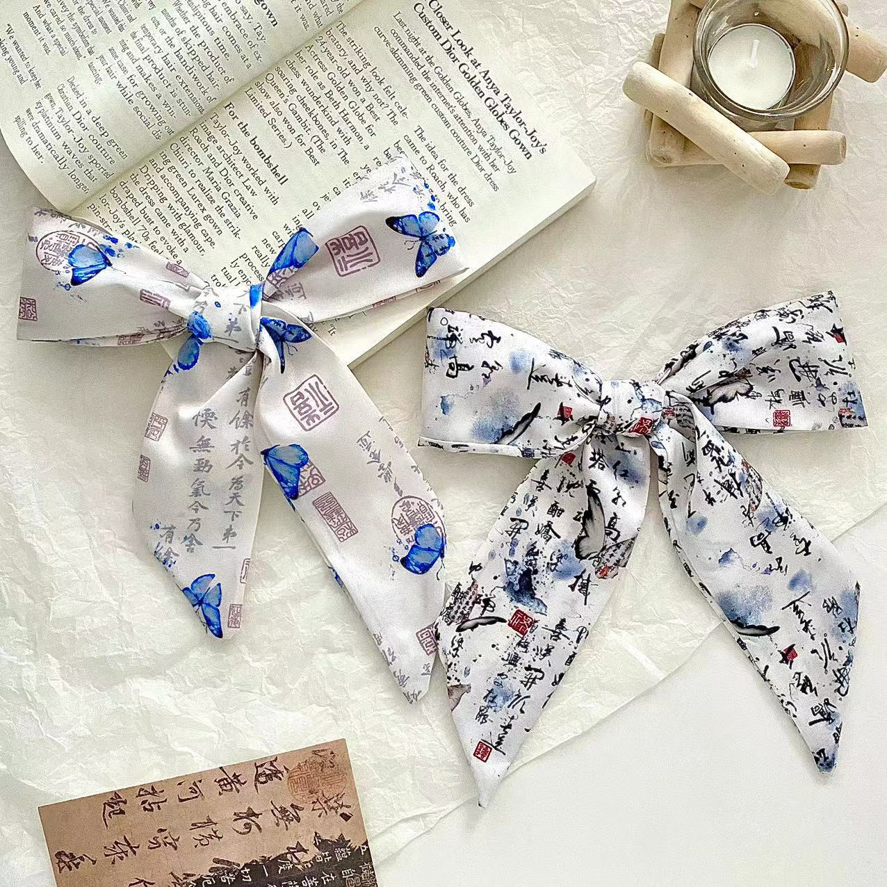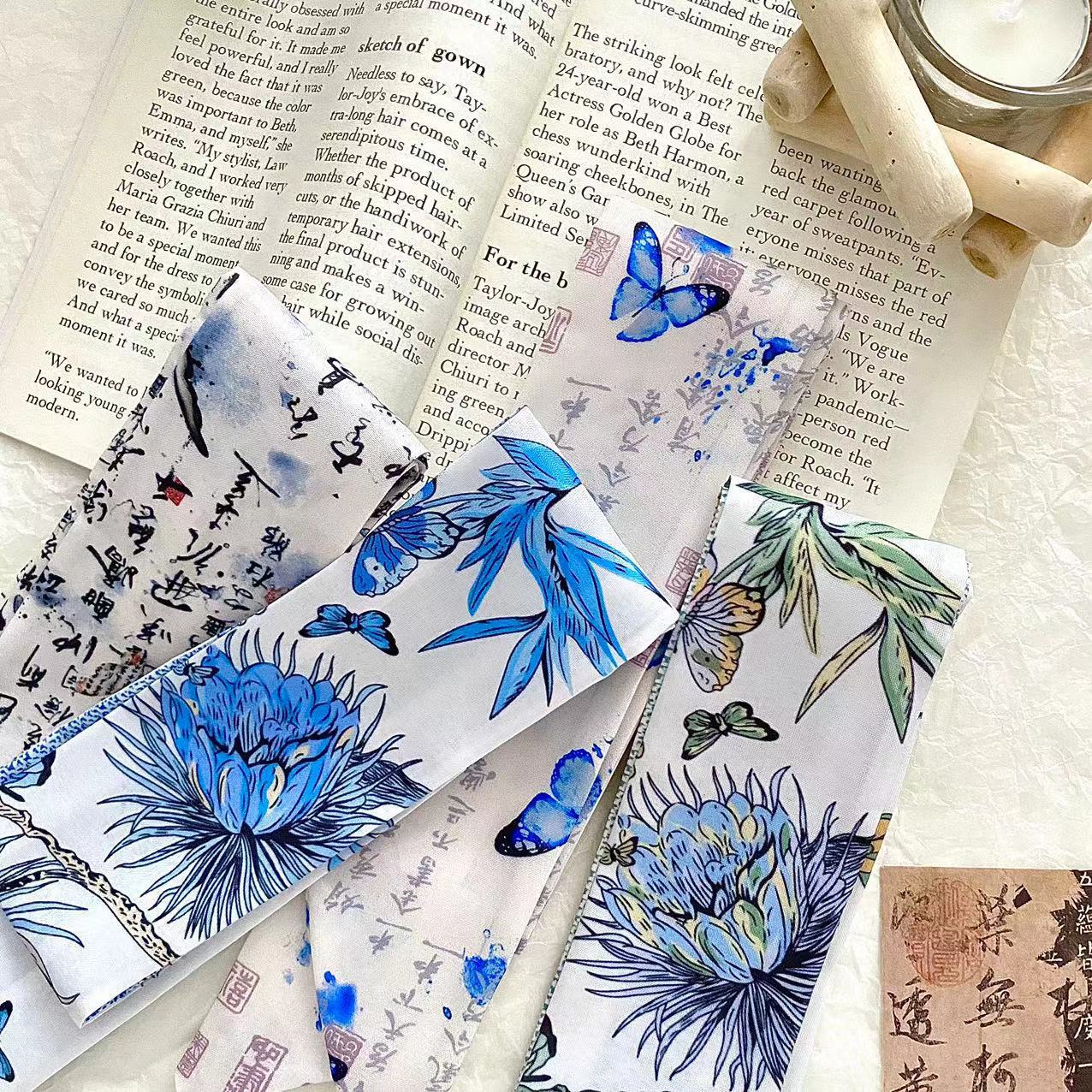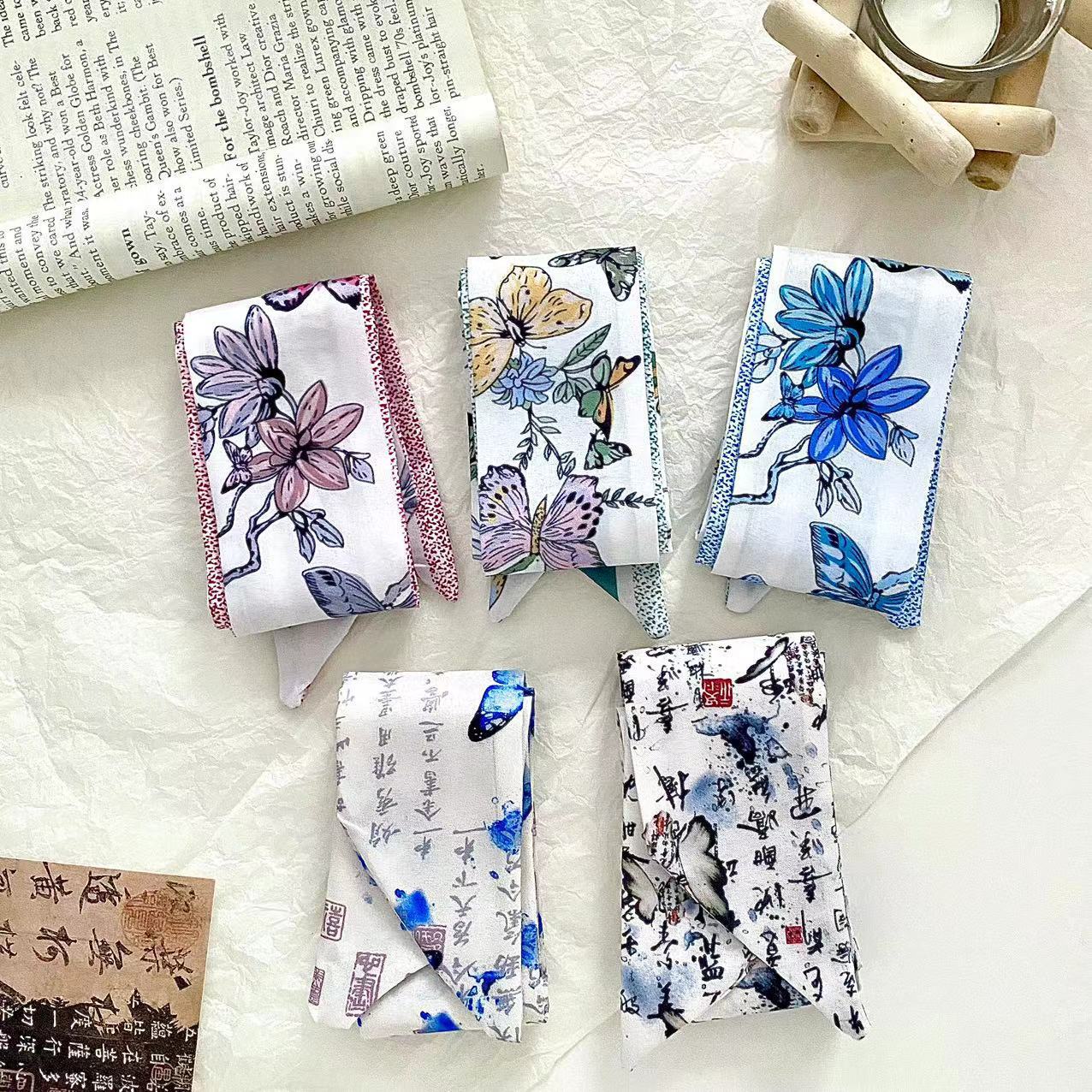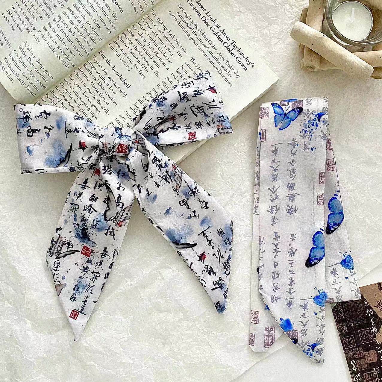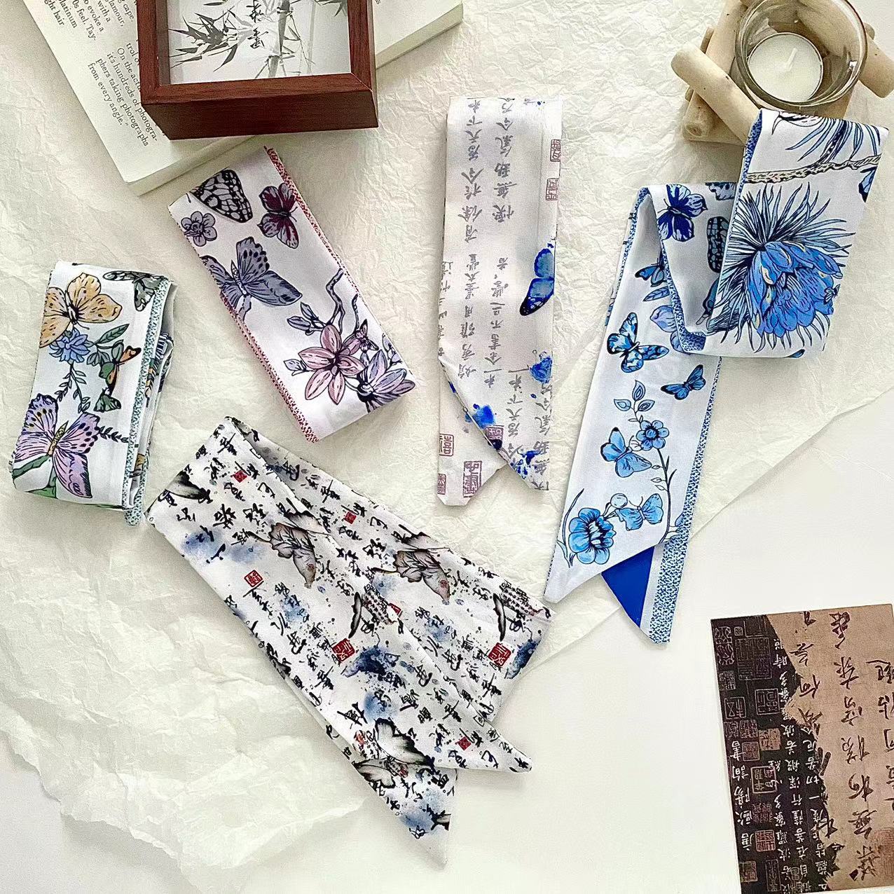 고급 꽃 나비 스카프 프랑스 우아한 머리 넥타이 가방 핸들 리본 새로운 모든 매치 스카프 장식