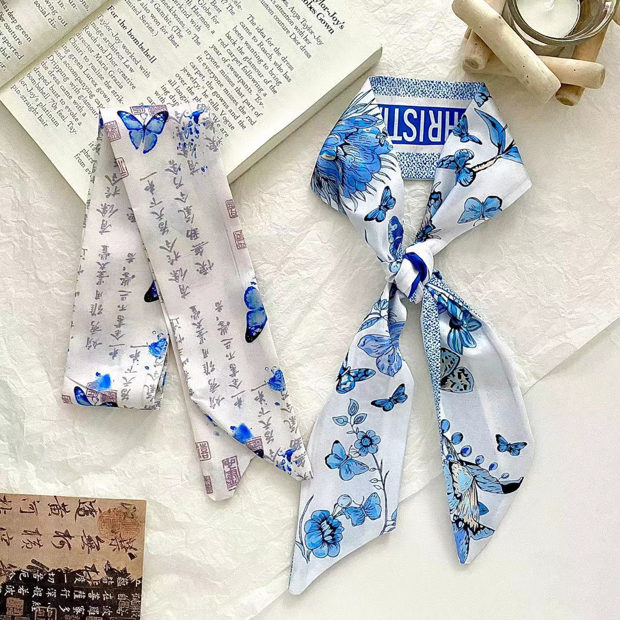 고급 꽃 나비 스카프 프랑스 우아한 머리 넥타이 가방 핸들 리본 새로운 모든 매치 스카프 장식스토어 가기