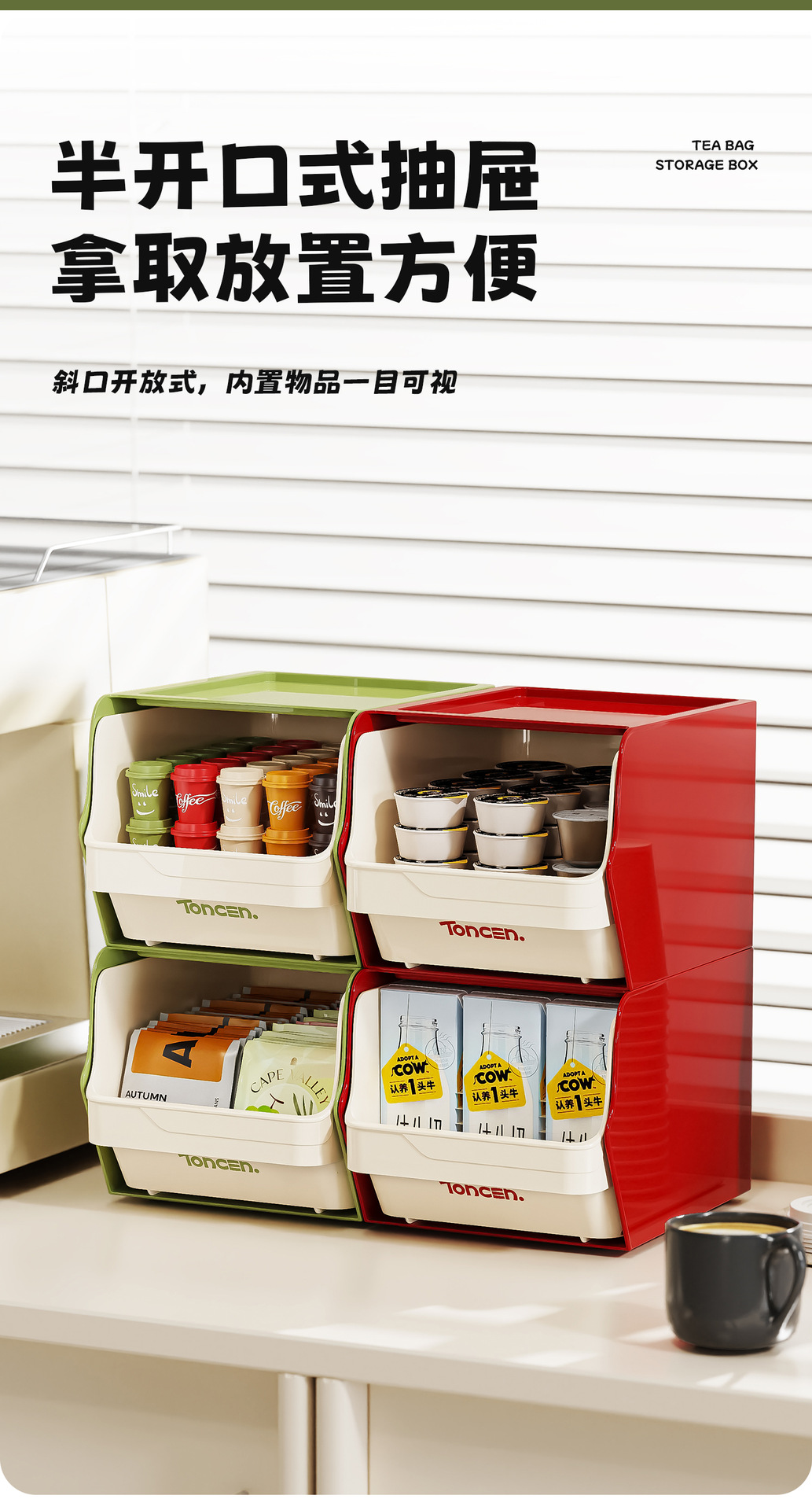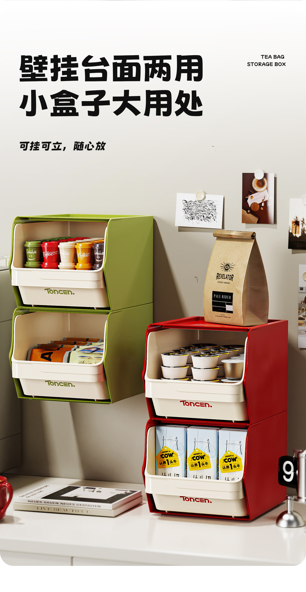 캡슐 보관 상자 벽에 장착 된 티백 보관 간식 랙 스택 쌓을 수있는 사무실 다실 인스턴트 커피 보관 랙스토어 가기