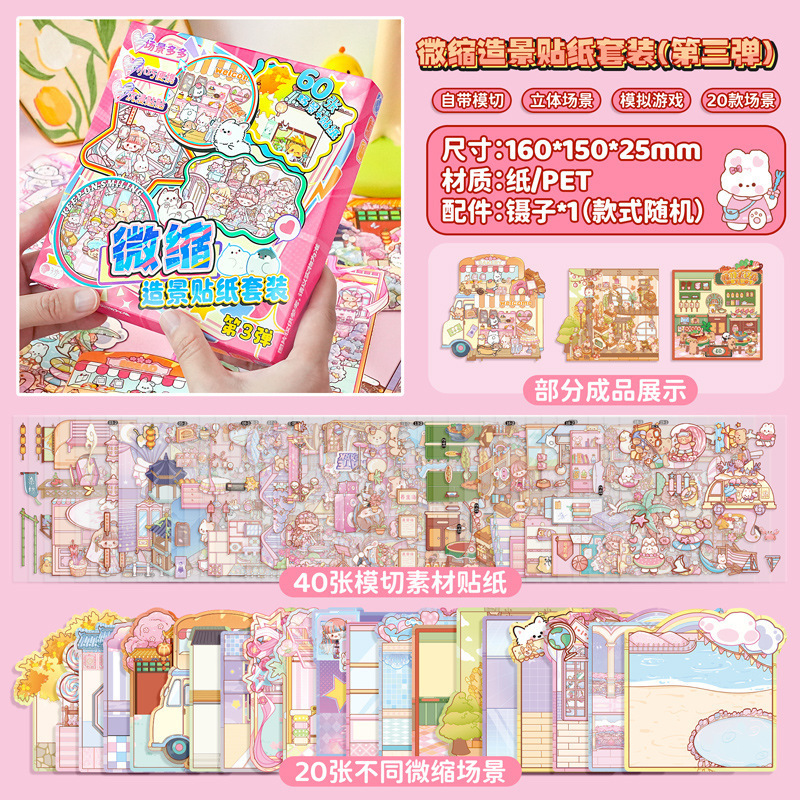 티라도 미니어처 장면 컬렉션이 조경 스티커이 작은 스티커 3D 입체 스택 시각적 소형 장식 스티커스토어 가기