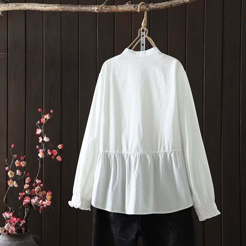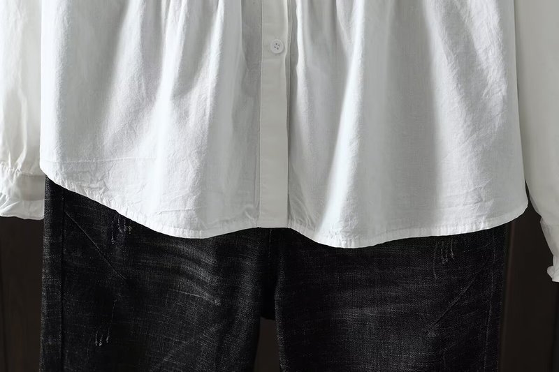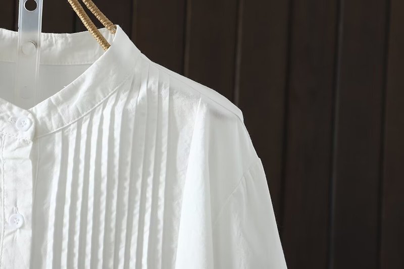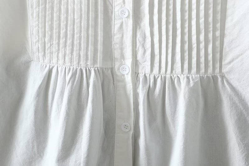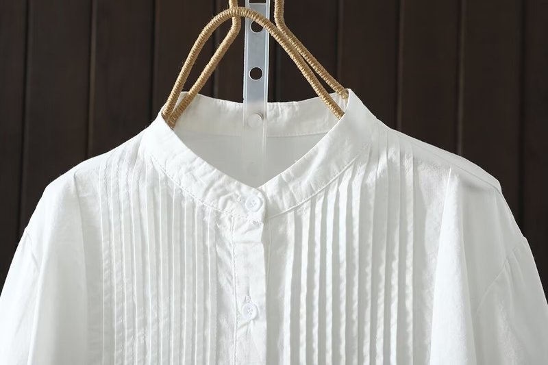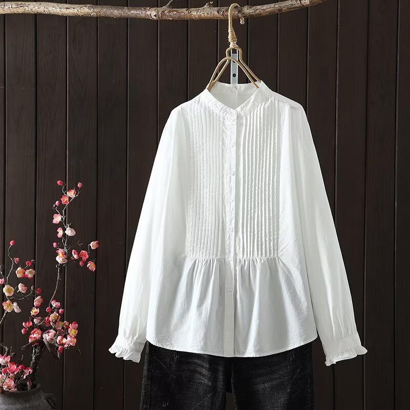 새로운 라운드 넥 주름 단색 여성 긴팔 카디건 셔츠 도매 조류의 한국어 버전