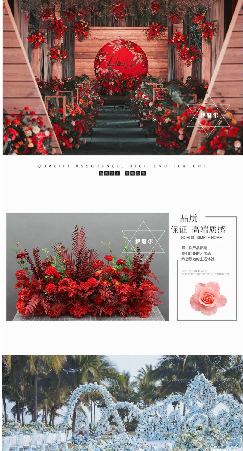 새로운 결혼식 대규모 꽃 줄 시뮬레이션 실크 꽃 완성 장식 유칼립투스 꽃 줄 플랫폼 도로 리드 웨딩 꽃 예술