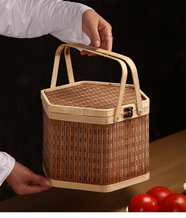 대나무 바구니 들고 대나무 바구니 바구니 쇼핑 바구니 용 보트 축제 Zongzi 선물 상자 따기 대나무 바구니 손으로 짠
