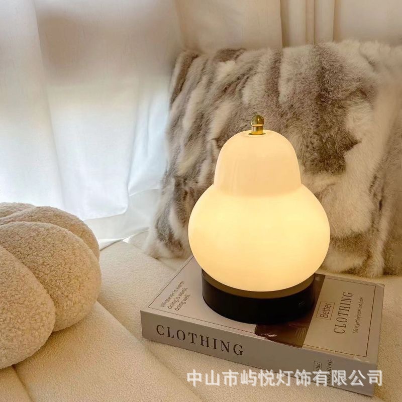 크림색 배 모양 테이블 램프, 빈티지 스타일 침실 침대 옆 램프, 유리 충전식 터치 휴대용 야간 조명, 디밍 가능 눈 보호 기능