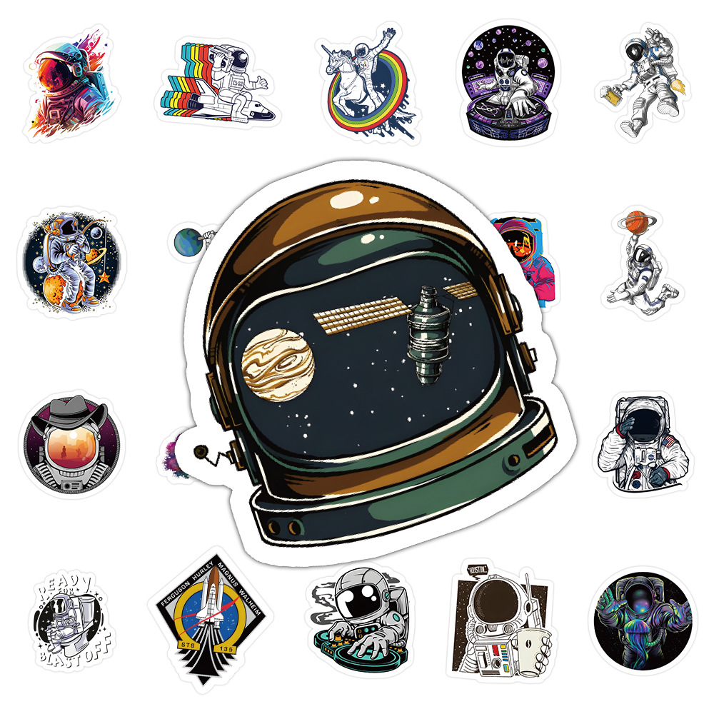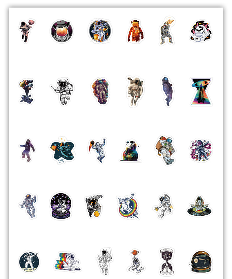 60 우주 비행사 낙서 스티커 별이 빛나는 하늘 창조적 인 장식 수화물 노트북 수첩 재료 스티커 탐험스토어 가기