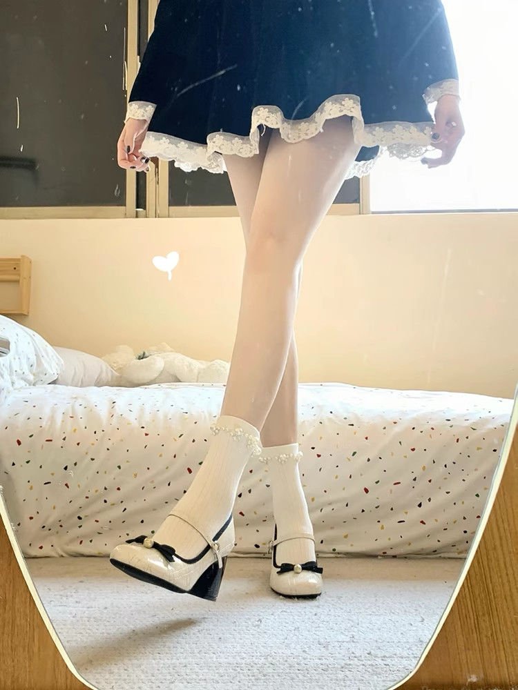 하이힐 메리 제인 신발 여성의 2025 새로운 틈새 디자인 센스 프렌치 버클 활 라운드 발가락 두꺼운 신발