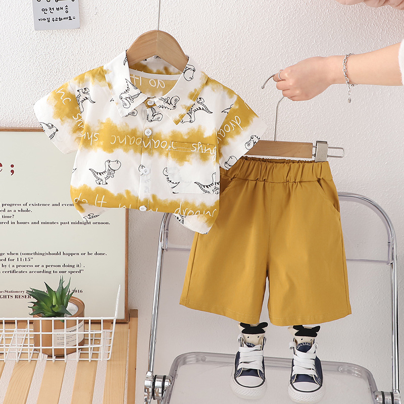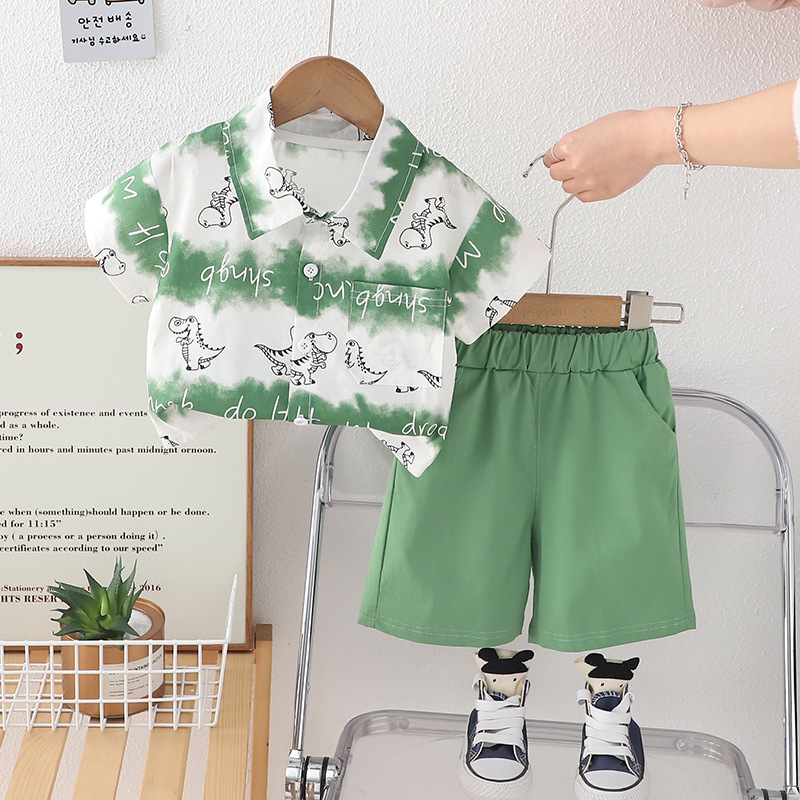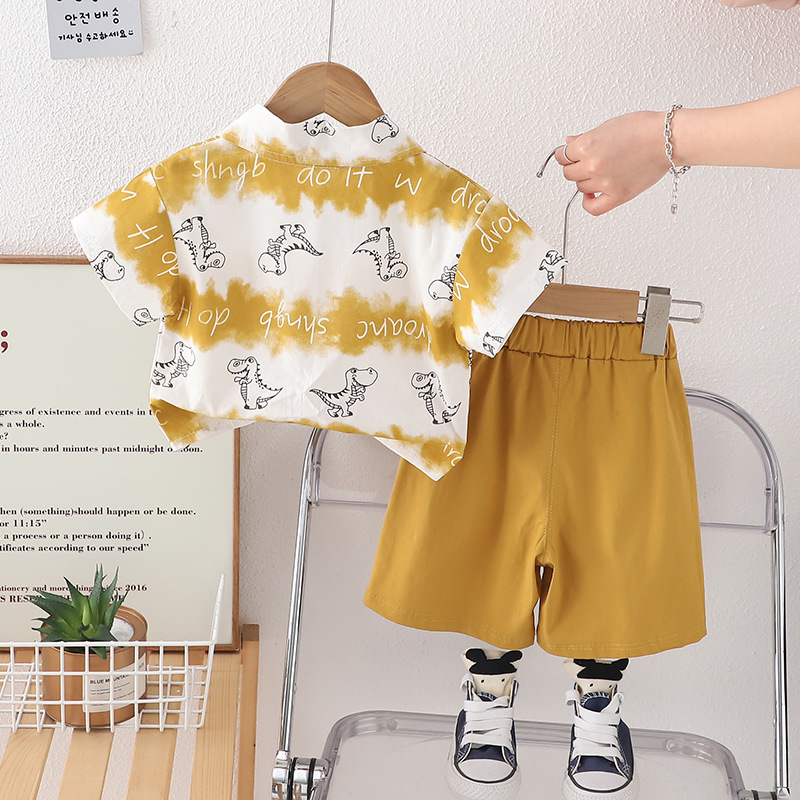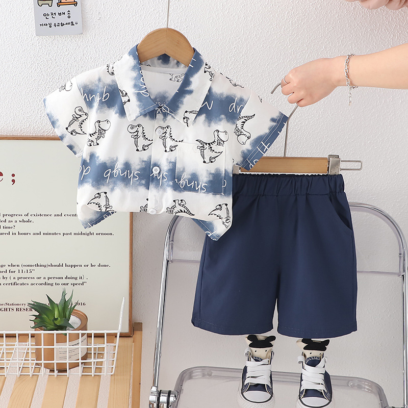 남자들의 여름 세트 2025 새로운 스타일 어린이 여름 반팔 반바지 대형 어린이 얇은 탑을위한 투피스 세트